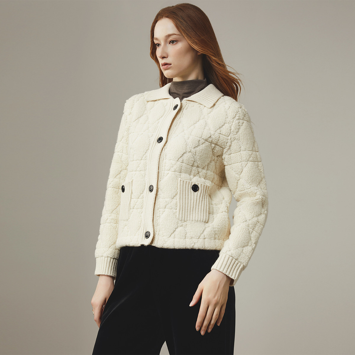 刘一一&COCO ZONE100%羊毛早秋翻领针织外套经典开衫 23C29839