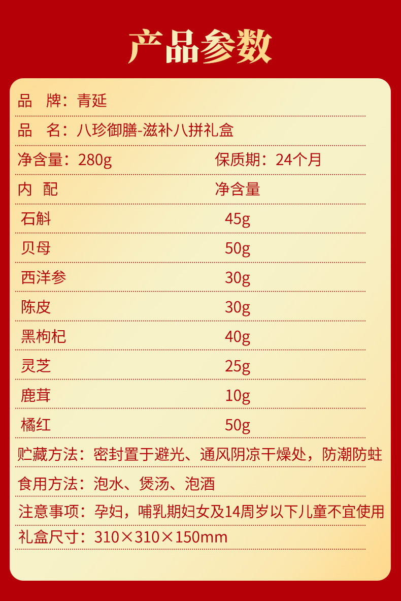 青延滋补八珍御膳-八拼礼盒280g