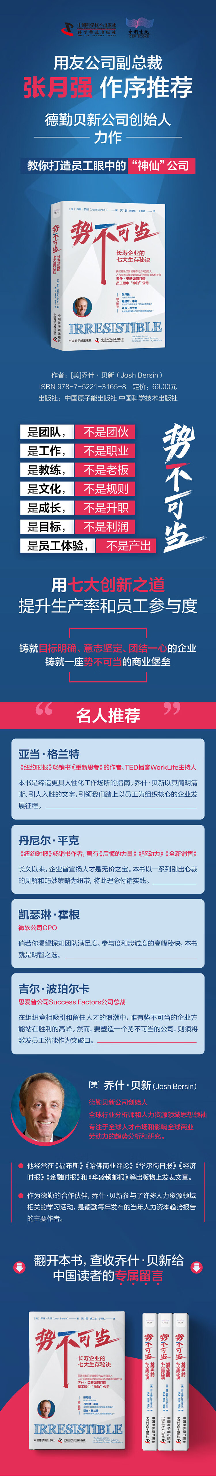 “本书是缔造更具人性化工作场所的指南。乔什·贝新以其简明清晰、引人入胜的文字,引领我们踏上以员工为组织核心的企业发展征程。”