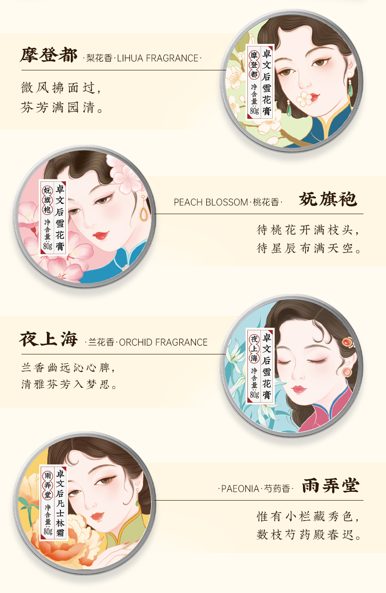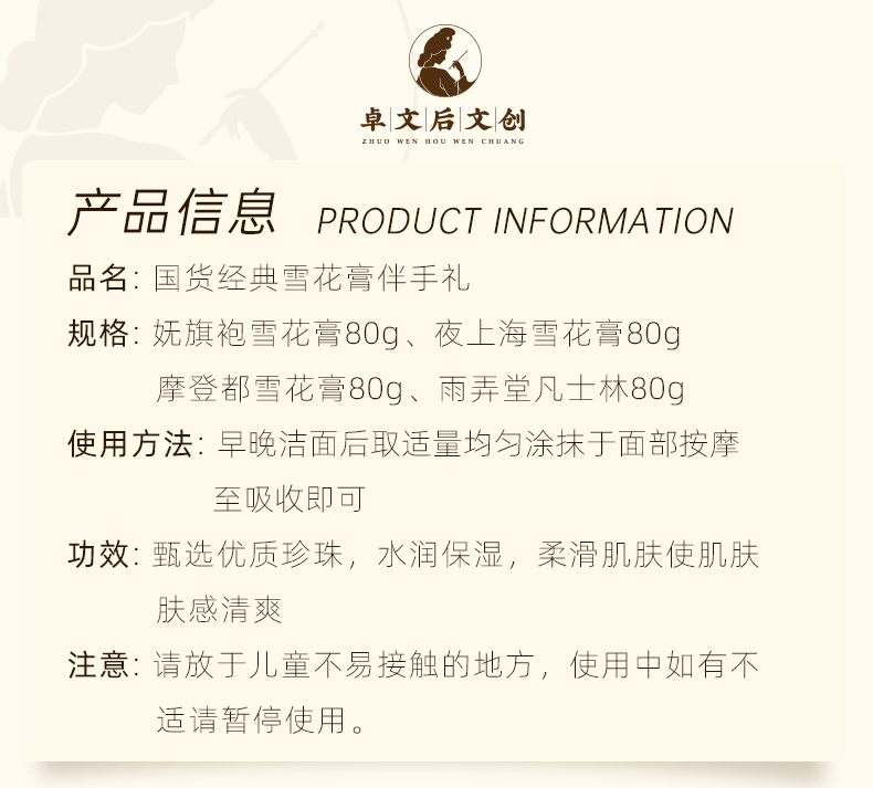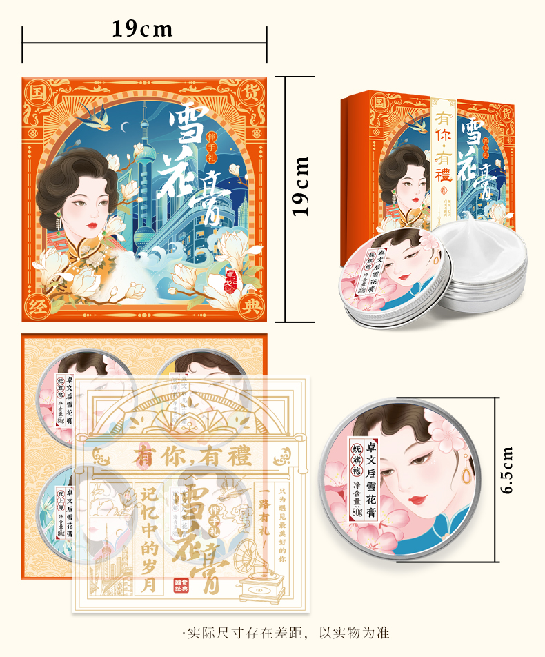 卓文后经典雪花膏套盒国货经典(橙色)有你有礼