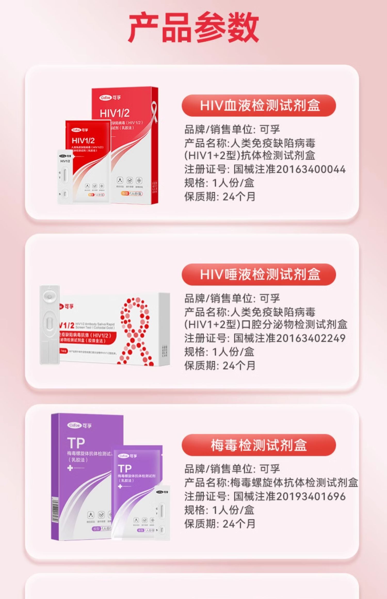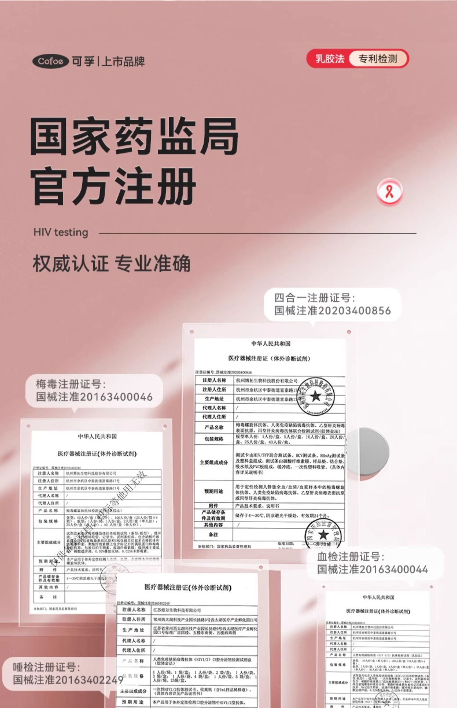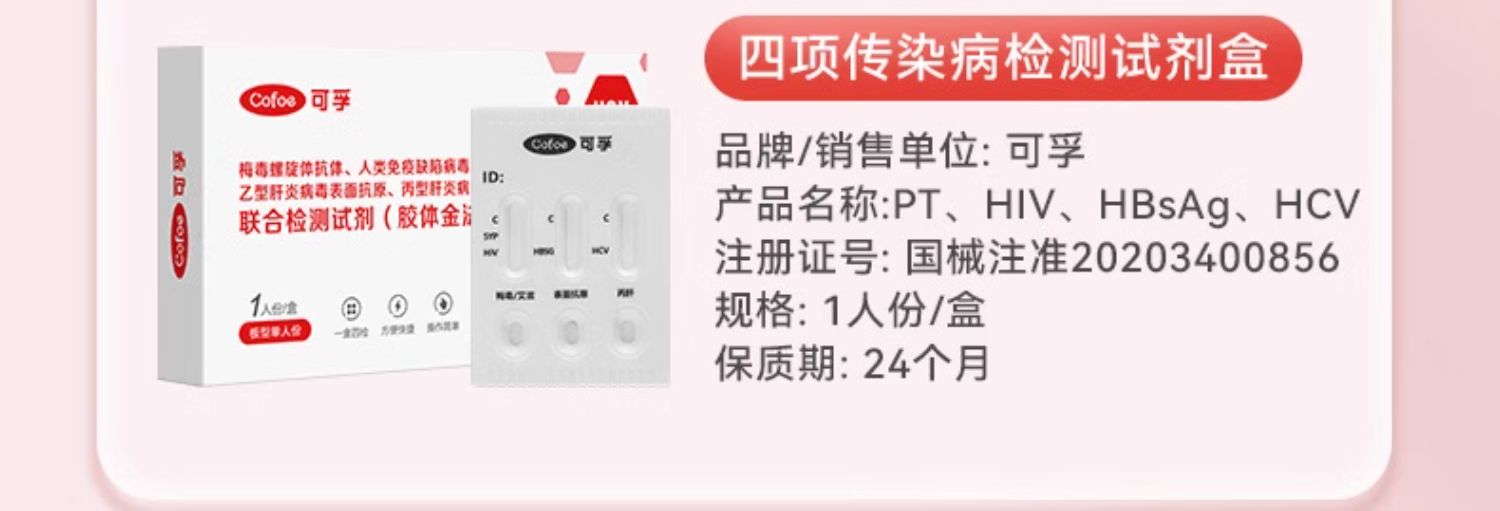 可孚hiv艾滋病检测试纸 梅毒hpv传染病自检试剂四合一