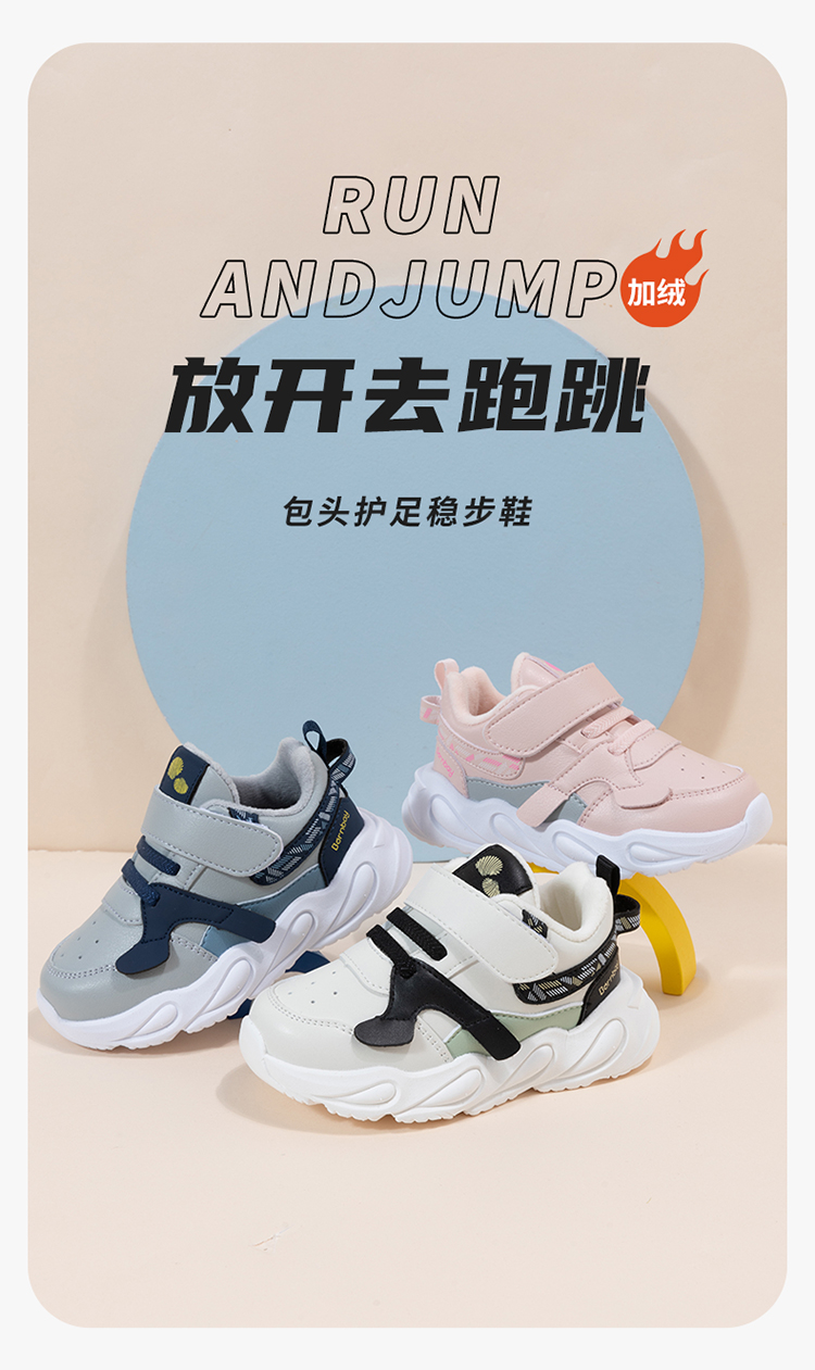 贝贝怡童鞋秋冬婴幼儿加绒保暖宝宝鞋儿童休闲撞色运动鞋234X515