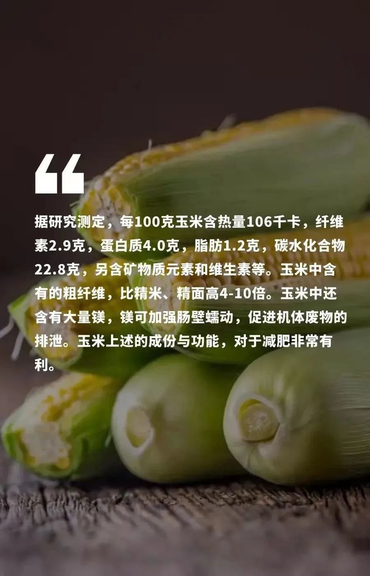 在玉米成熟时的花穗玉米须,有利尿作用,也对减肥有利!玉米可煮汤代茶饮,也可粉碎后制作成玉米粉、玉米糕饼等。膨化后的玉米花体积很大,食后可消除肥胖人的饥饿感,但食后含热量很低,也是减肥的代用品之一哦!
