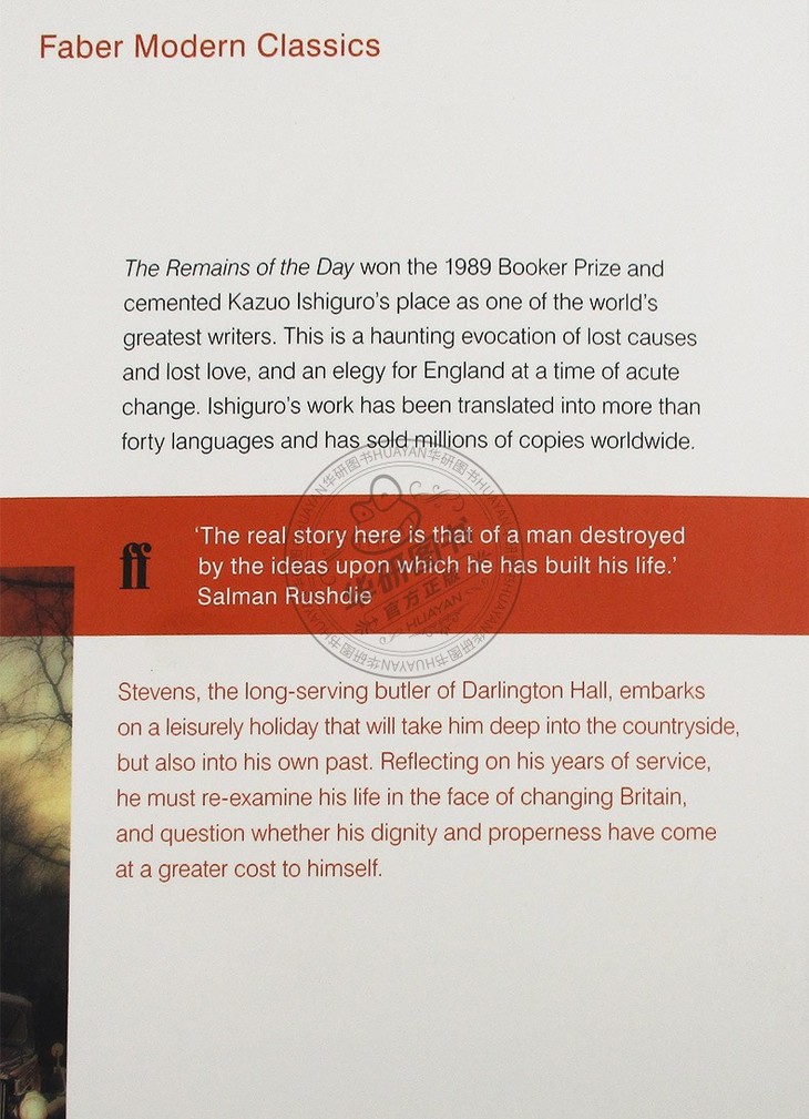 书名:The Remains of the Day: Faber Modern Classics石黑一雄:长日留痕