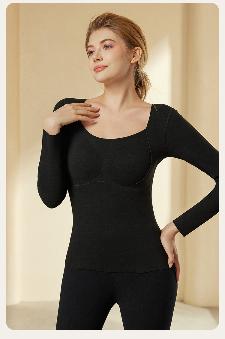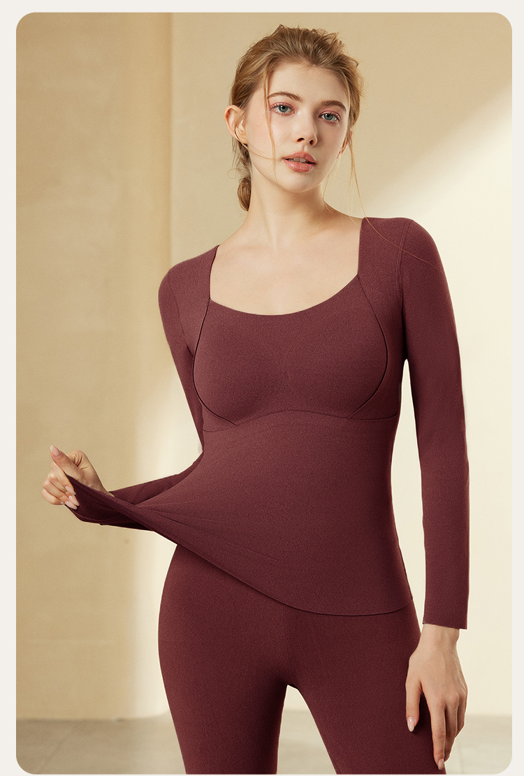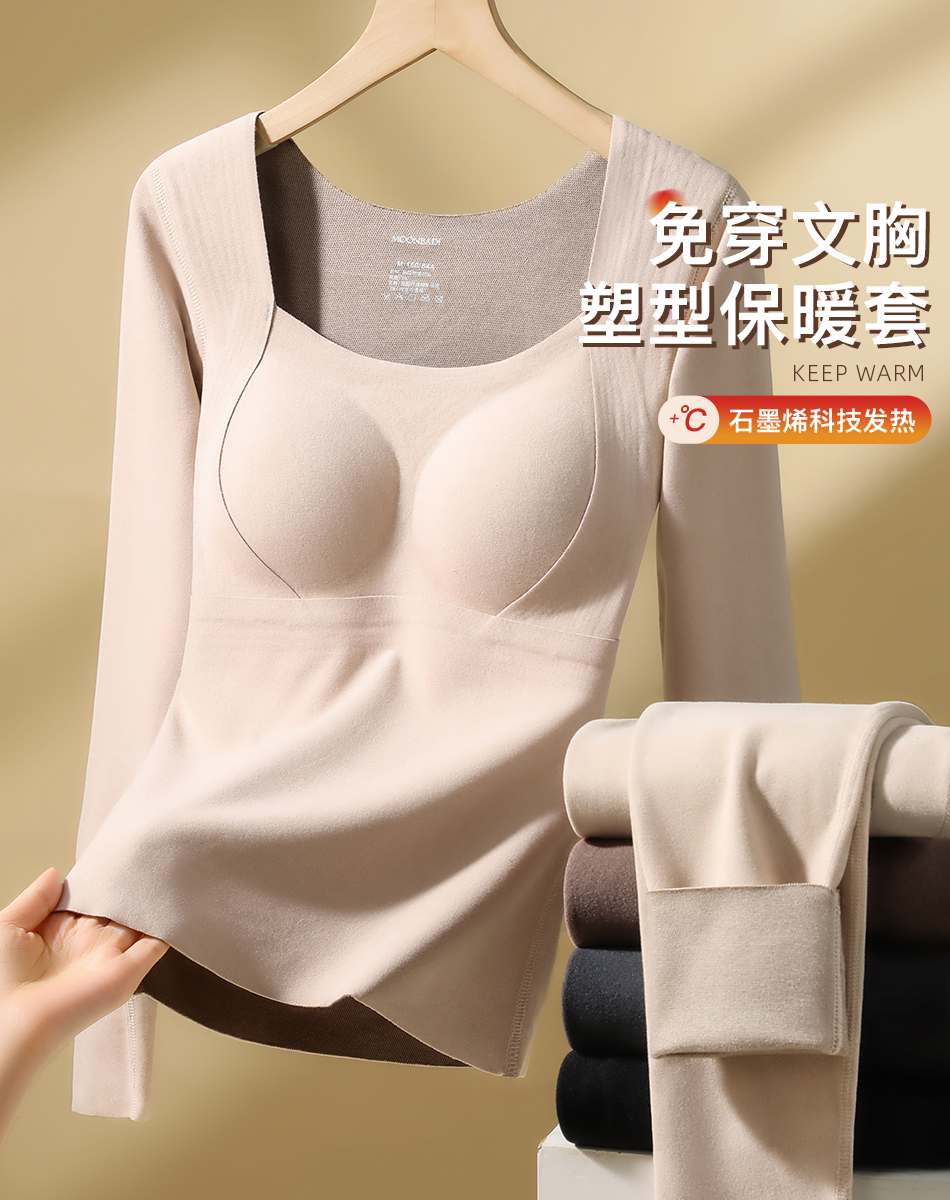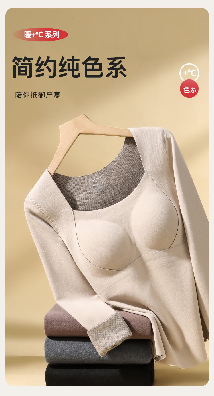 【带胸垫保暖套】秋冬免穿文胸轻塑型女士保暖内衣双面绒秋衣秋裤8866侧收提拉保暖上衣套
