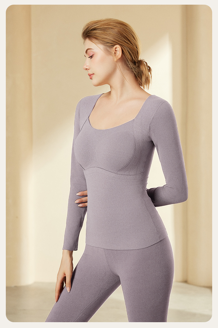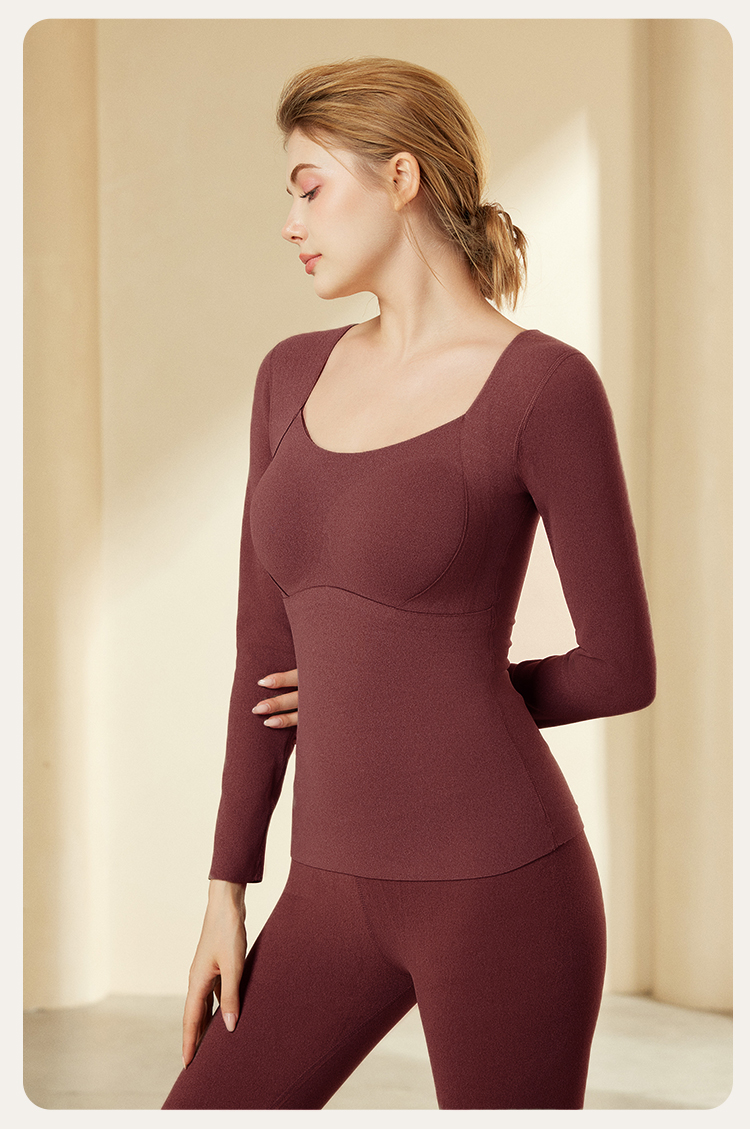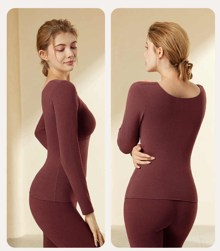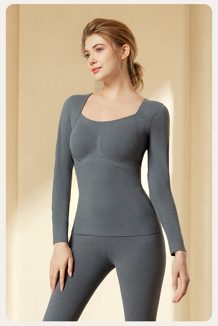 【带胸垫保暖套】秋冬免穿文胸轻塑型女士保暖内衣双面绒秋衣秋裤8866侧收提拉保暖上衣套
