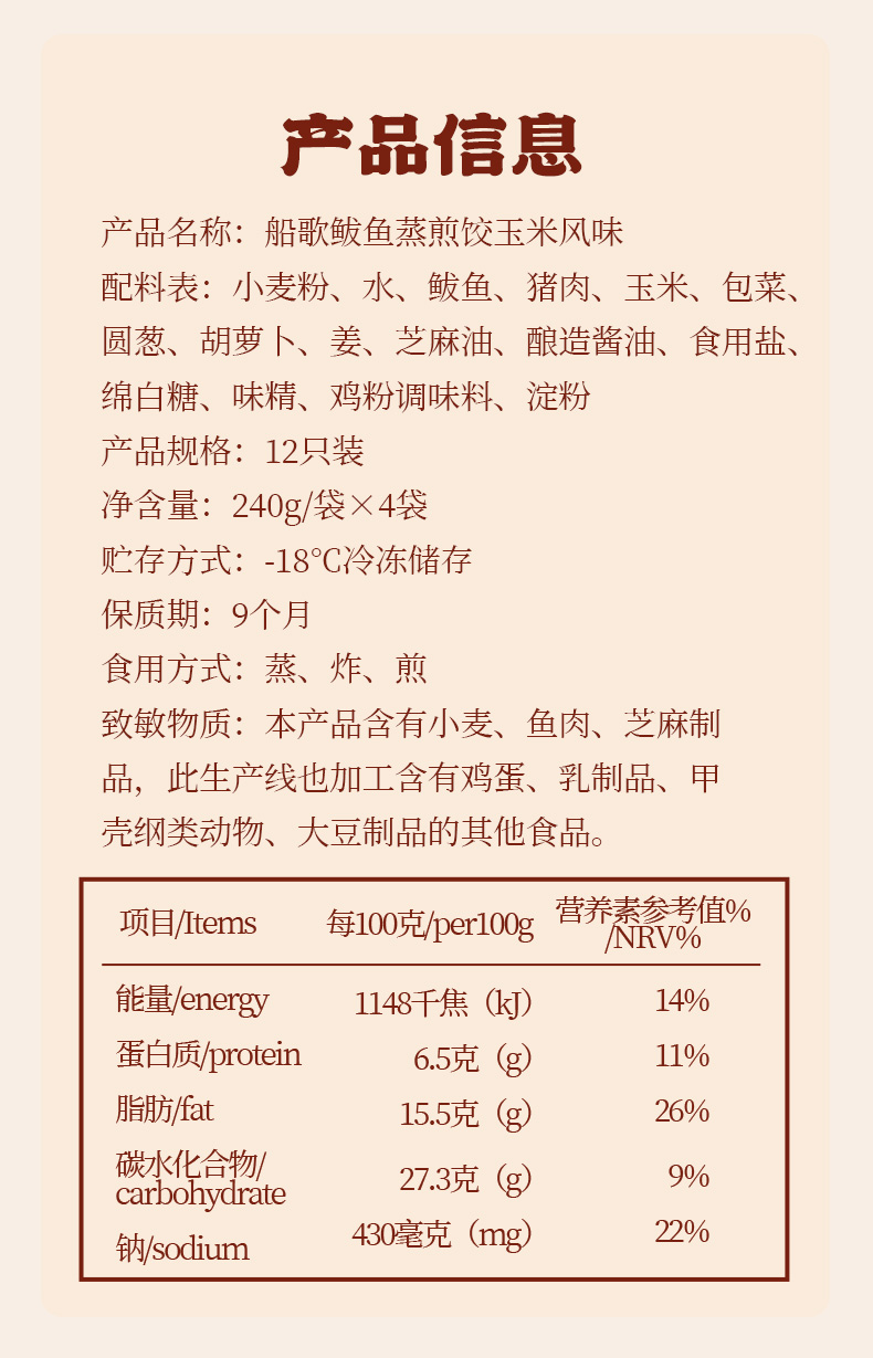 船歌鱼水饺 鲅鱼蒸煎饺礼盒240g*4袋