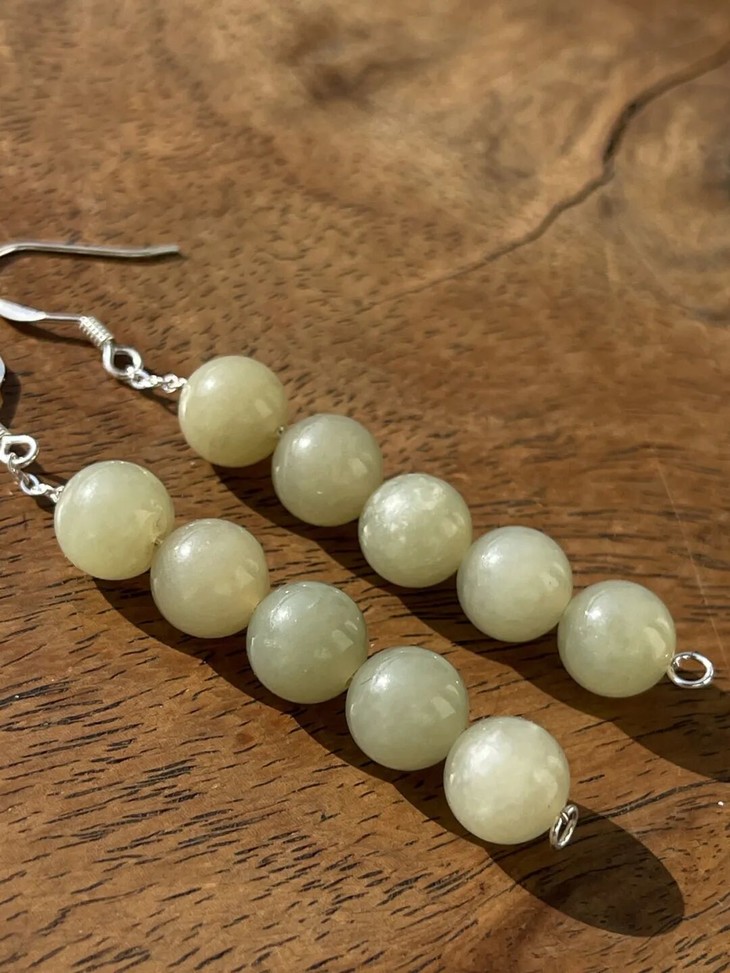尺寸:白玉圆珠共108粒,每粒直径:0.8厘米,项链75粒,长度:62厘米,重量:61.4克;手链23粒,长度:18厘米,重量:18克;耳坠10粒,长度(搭配925银钩):6.5厘米,一对重量:8.5克。