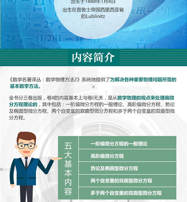 该书系著名数学家柯朗、希尔伯特经典之作,也是数学物理方法必读之书,译著2014年出版以来销量近万册。