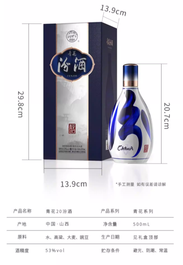 汾酒 青花20汾酒 清香型53度白酒500ml