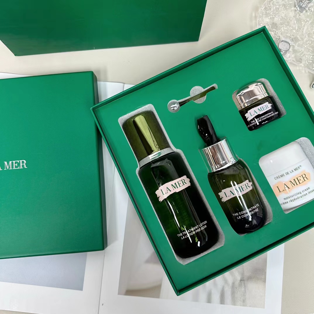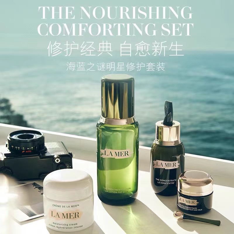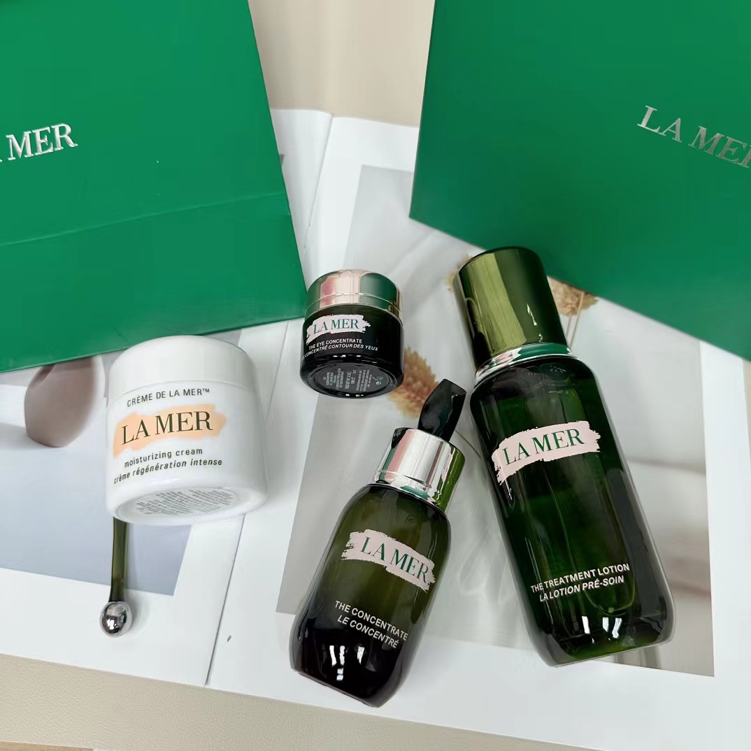 【海蓝之谜明星修护四件套】配专柜手提袋代购级别 全新海蓝之谜升级正装4件套✔Lamer海蓝之谜修复四件套 ▪包含:眼霜15ml➕面霜60ml➕精粹水150ml➕新版精华50ml‼全部lamer最最最明星的单品~限量套盒简直划算。新版海蓝之谜修复正装4件套,修复能力一级棒‼️