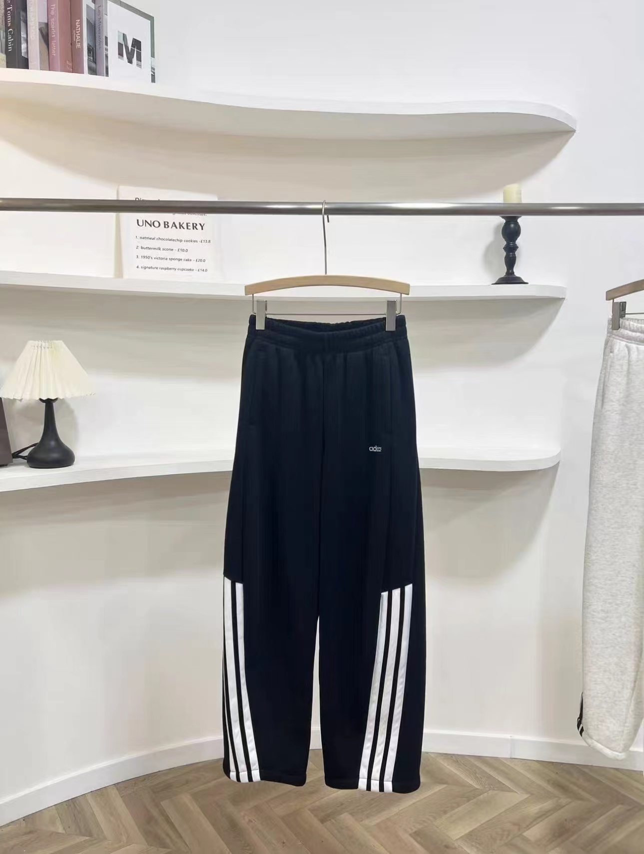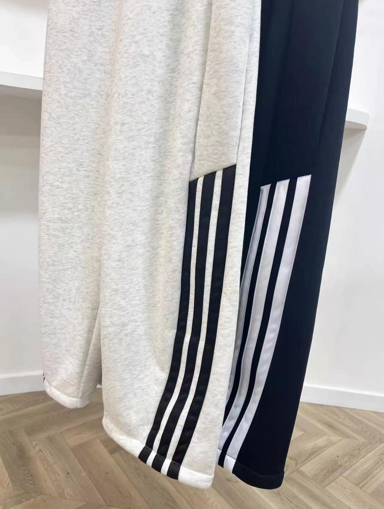 宽松弯刀裤型,遮肉显瘦,裤腿三条杠设计,日常出街、运动都合适,细节图放大实拍,字母logo、绣标等清晰可见,做工扎实有质感,耐脏,轻盈,春夏秋三季都能搭。宽松微阔版型裹住腿型不紧绷,裤脚利落收尾不拖沓。春秋天穿上这件裤子真的太可了。弯刀阔腿版型完全不挑身材 遮胯又显瘦。高腰设计显腿长,松松垮垮很有堆叠感