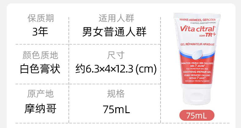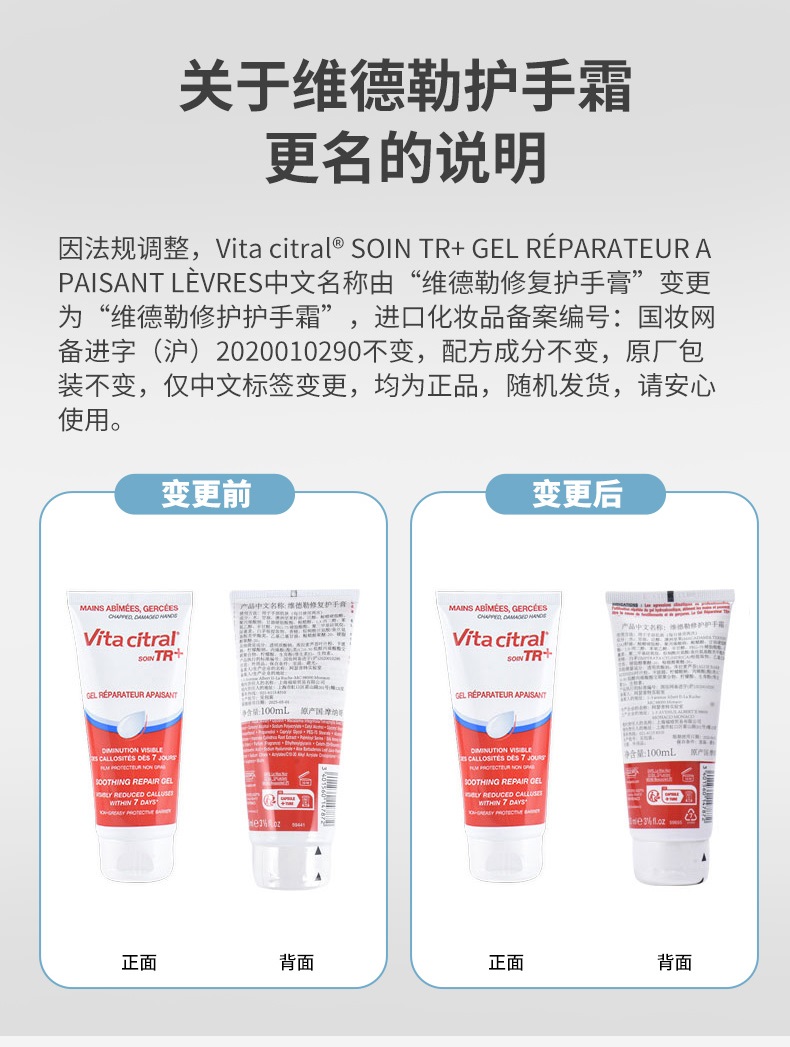 「限时加赠效期26年9月-同品牌滋养防晒护唇膏4g」60年欧洲经典护手品牌 · 法国Vita citral维德勒 修护功效型护手霜100ml|品牌直发