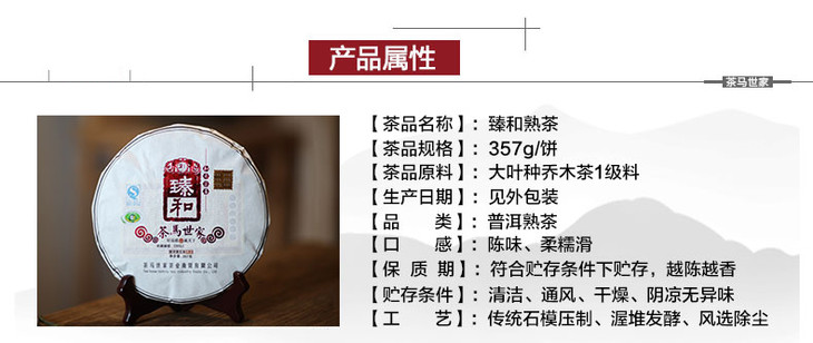 【品质款标杆】茶马世家臻和普洱茶熟茶饼茶叶云南七子饼茶礼盒装 357g