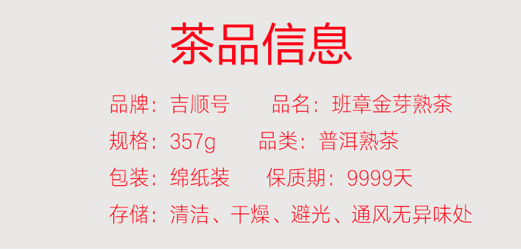 吉顺号2012年班章金芽珍藏版勐海发酵普洱熟茶357克