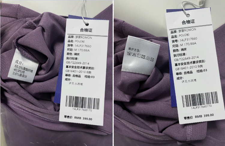 面料:55.5%聚酯纤维 40.9%棉 3.6%桑蚕丝