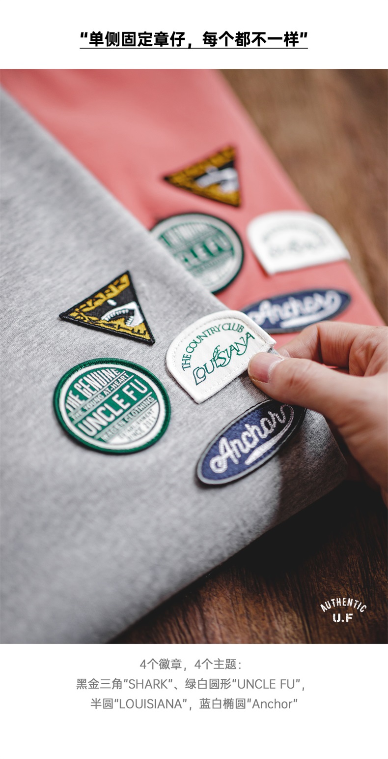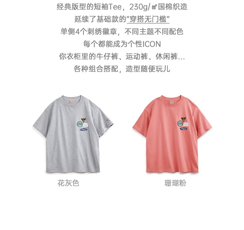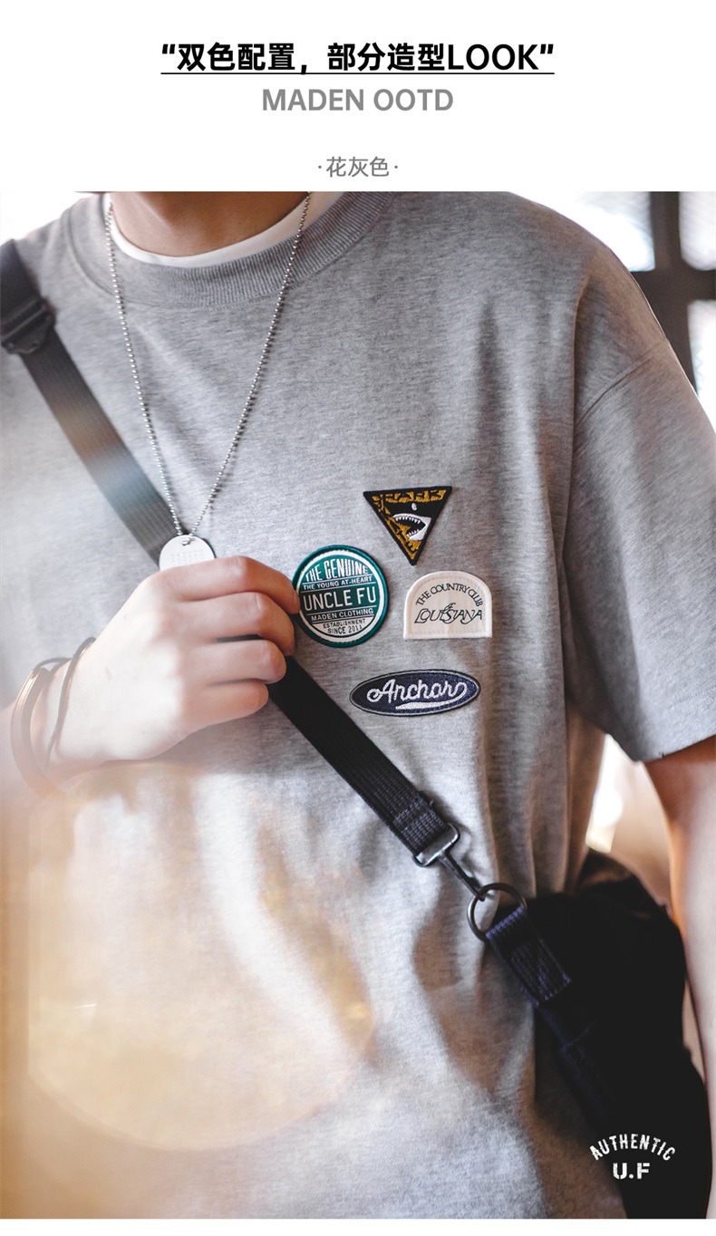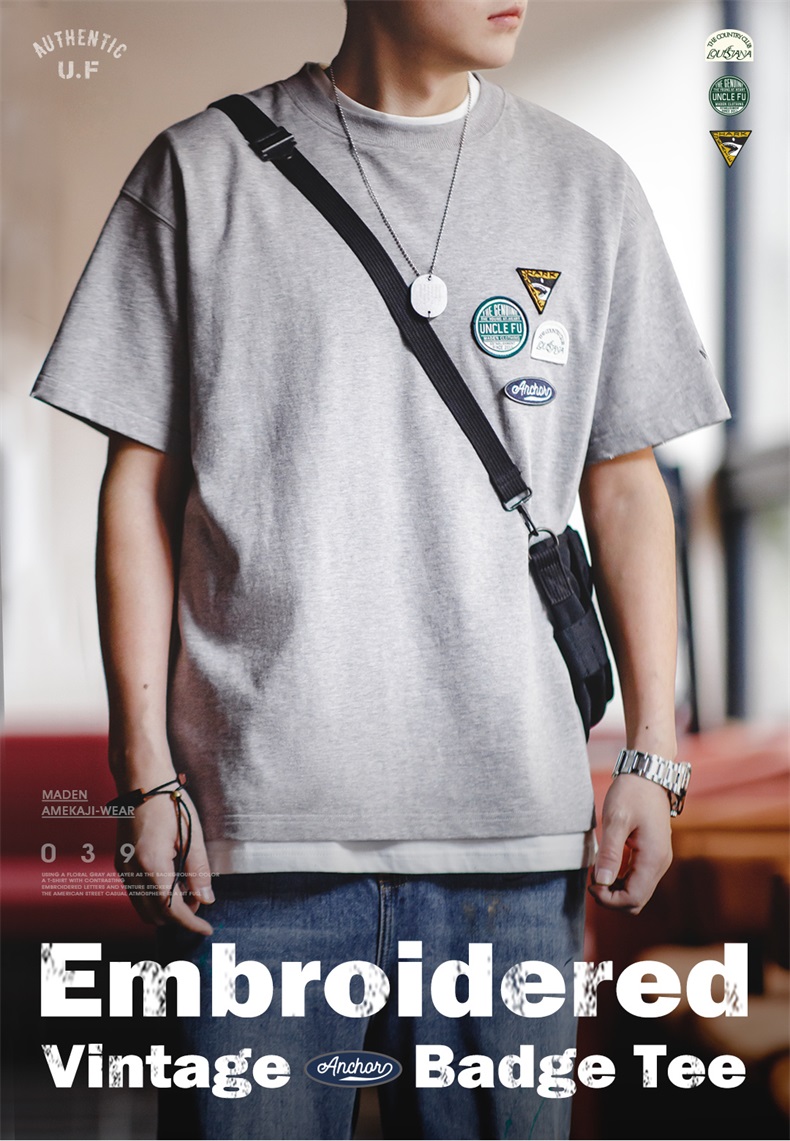 工装优选美式休闲刺绣徽章短袖t恤设计感纯棉圆领五分袖Tee男夏季