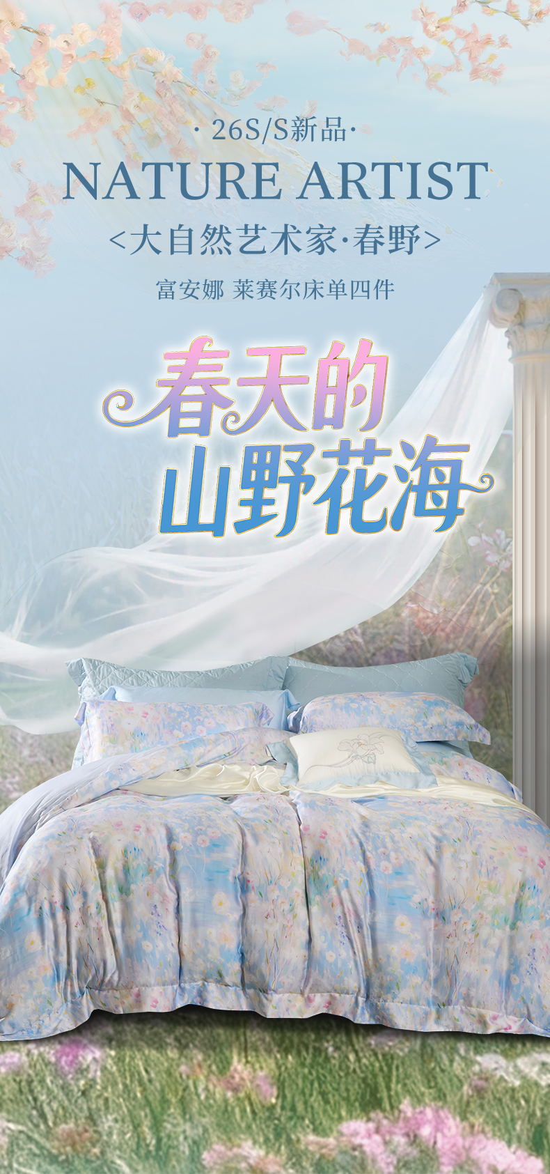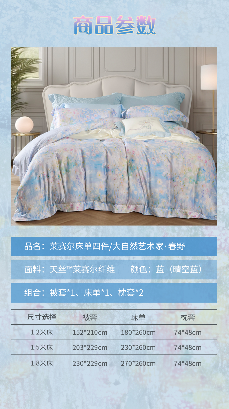 【6楼】富安娜莱赛尔床单四件/大自然艺术家·春野,牌牌价2680~2980元,活动价1199元,大小同价