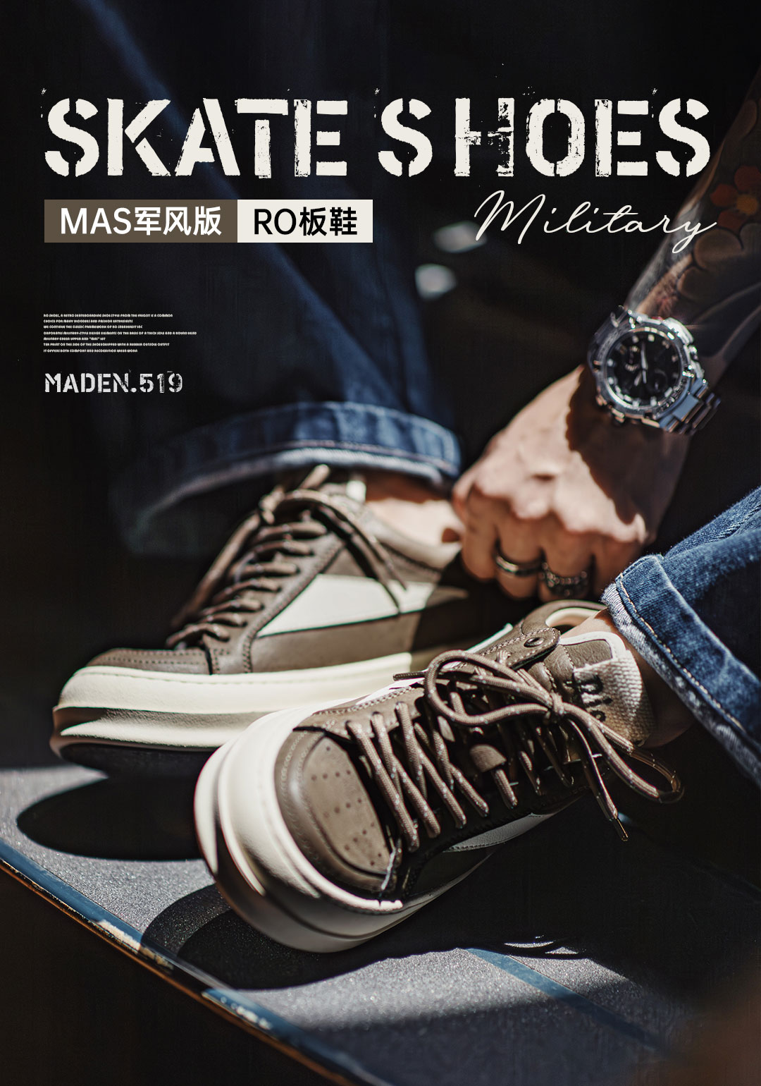 马登秋季新款男士复古RO美式高街板鞋厚底增高棕色cleanfit休闲鞋