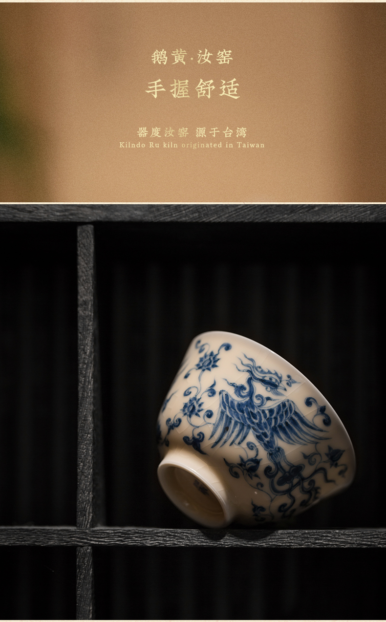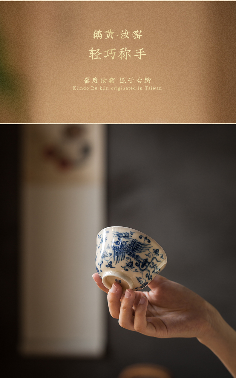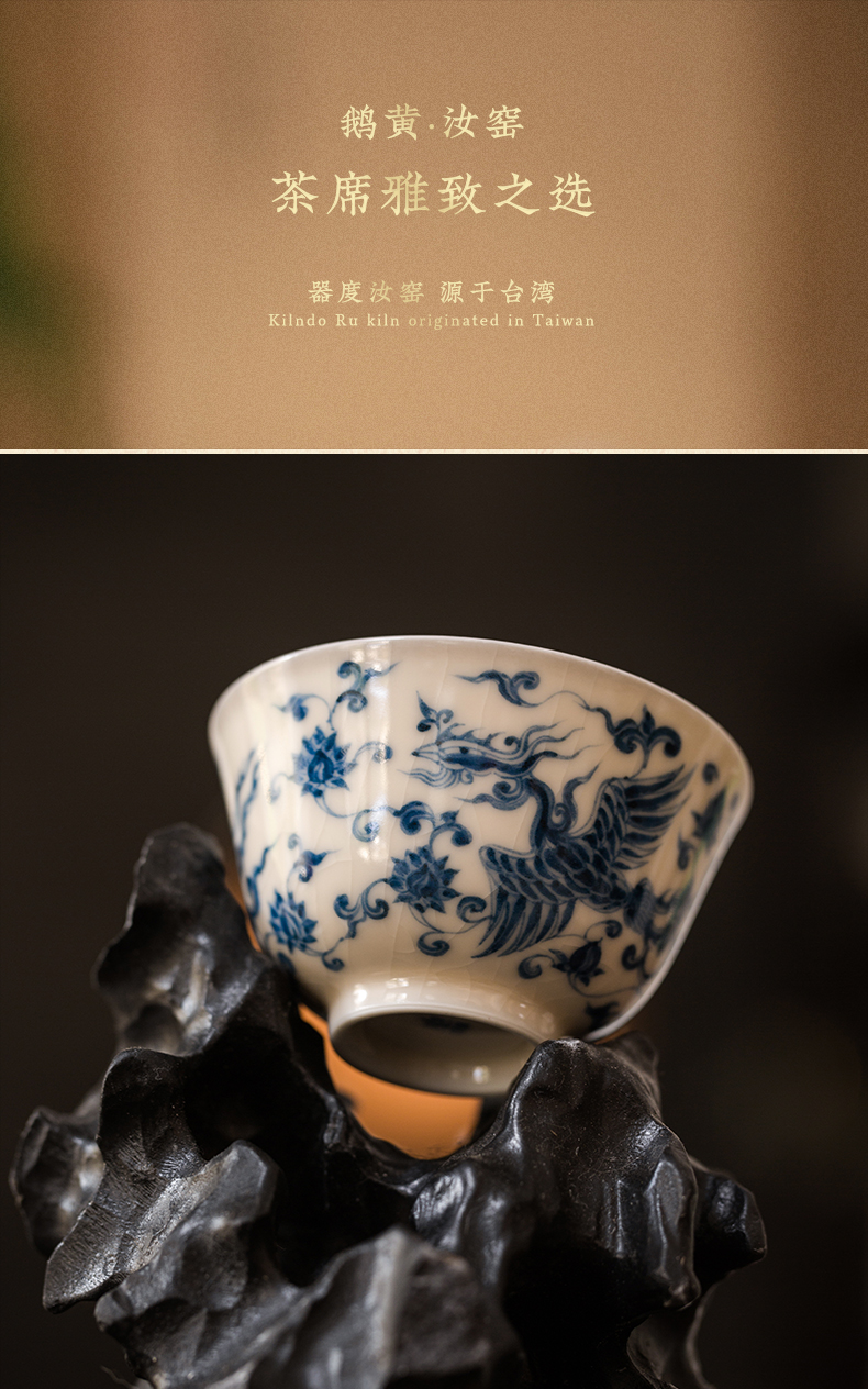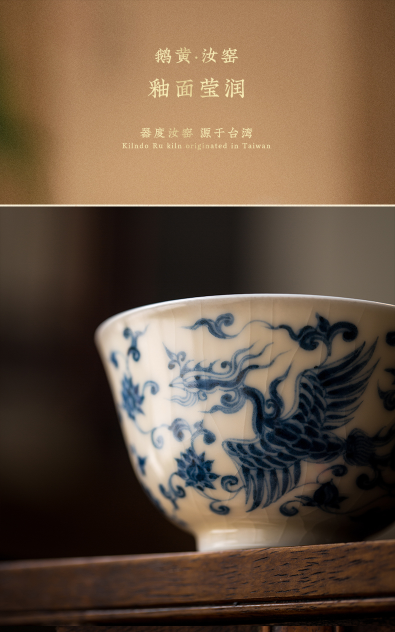 问鼎器度汝窑鹅黄青花月行杯(凤舞莲香)(相思红)(缺货)