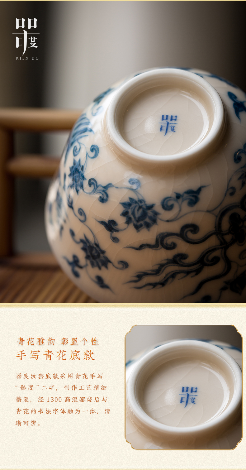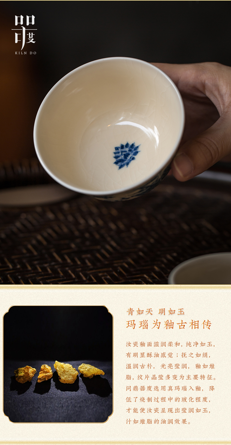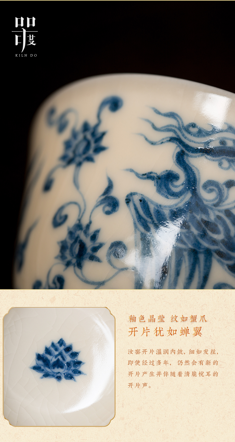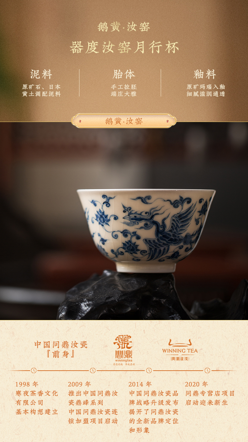 问鼎器度汝窑鹅黄青花月行杯(凤舞莲香)(相思红)(缺货)