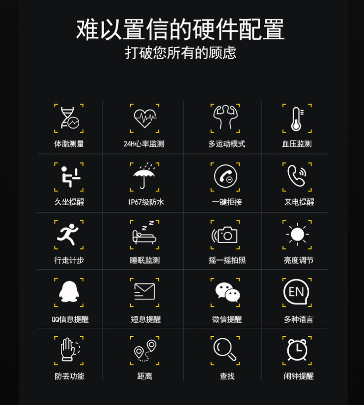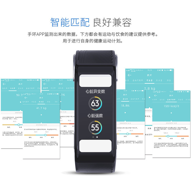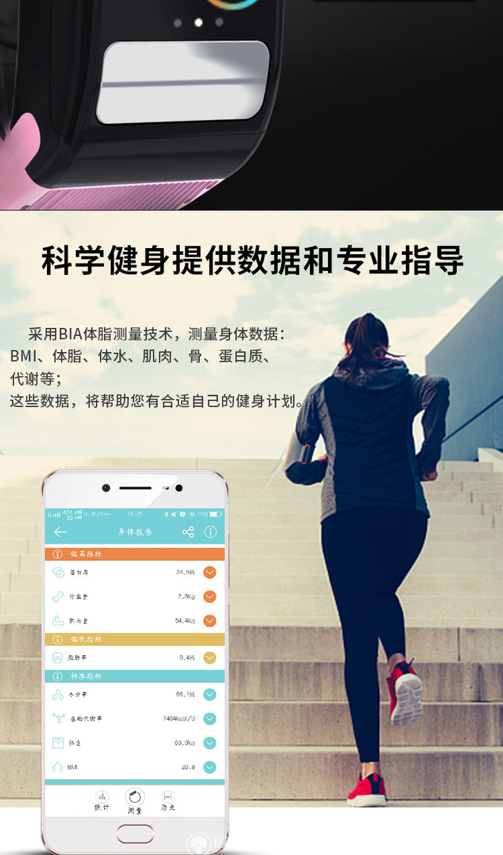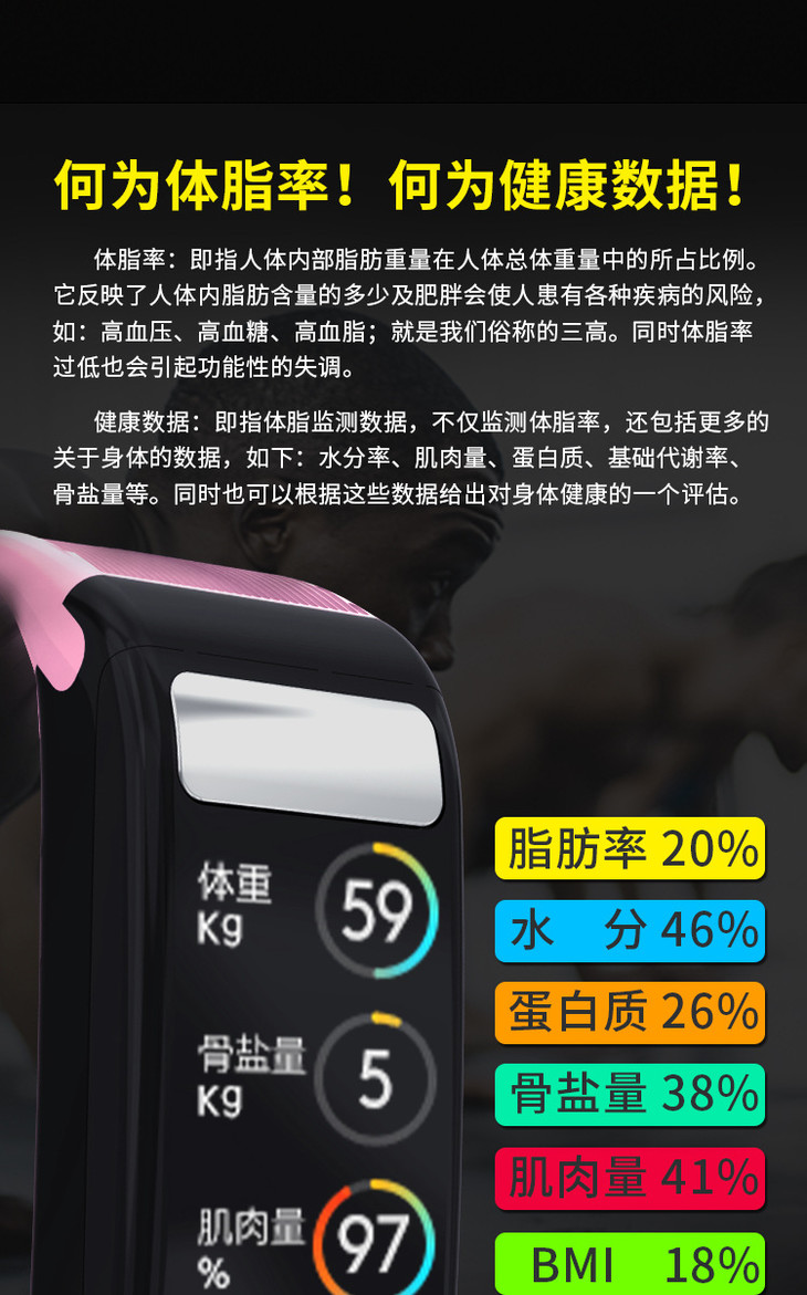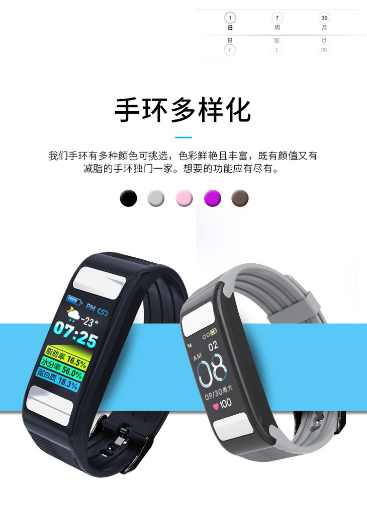 【智能手环】*彩屏体脂智能手环连续心率 血压健康测量蓝牙计步运动手环