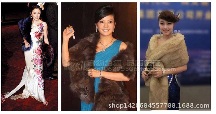 【围巾】秋冬季新款超长仿狐狸毛皮草新娘晚礼服加厚大披肩斗篷围巾围脖女