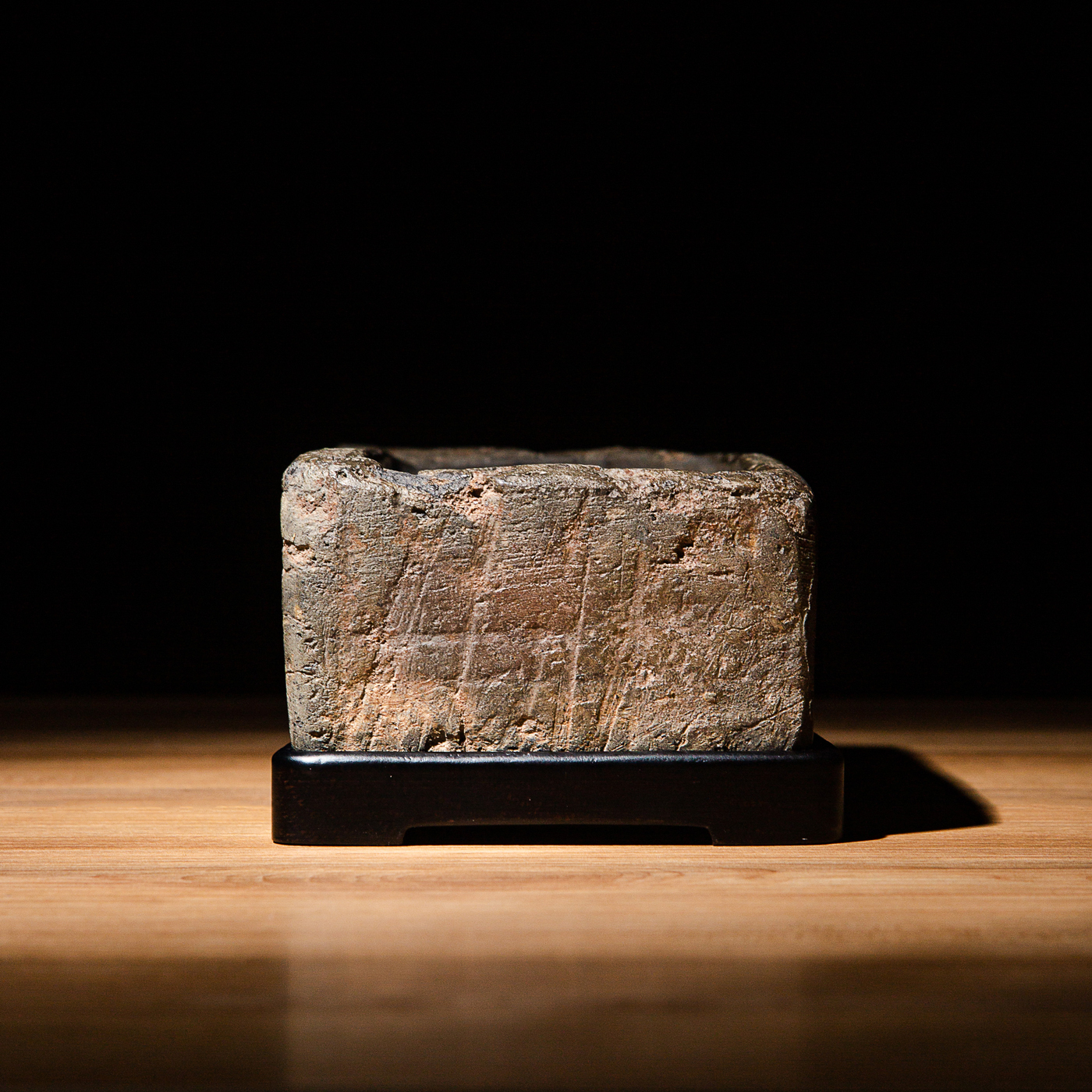 永和九年古砖制砚。砖与王羲之《兰亭序》同年,十分珍贵。其铭文精美古拙,字口清晰。此砚极具收藏价值,可遇而不可求。