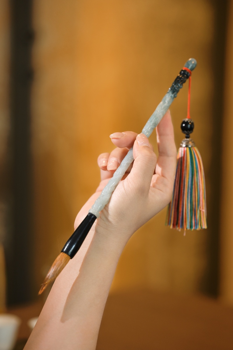 【茶香器韵】天然翡翠毛笔 文房雅集 墨韵相伴