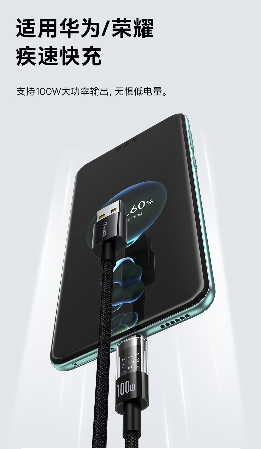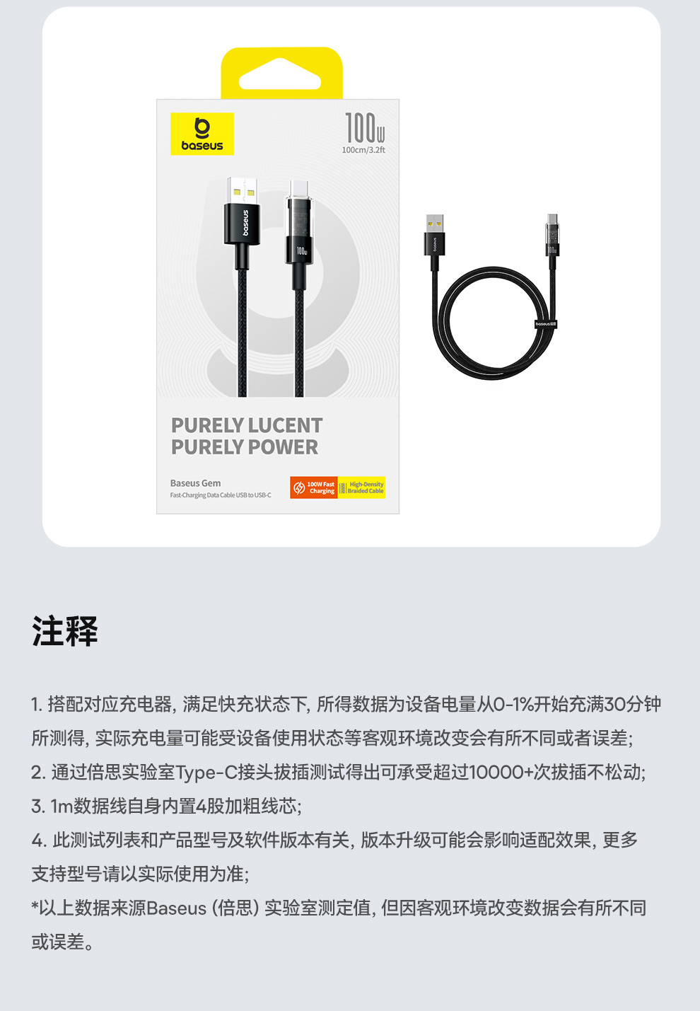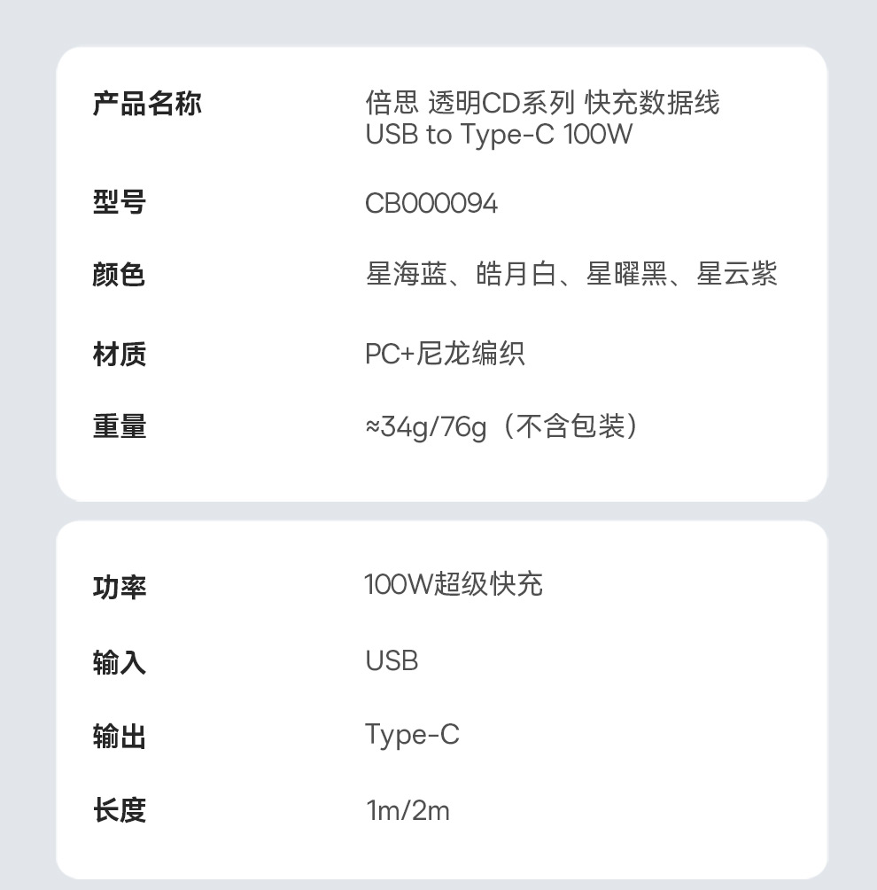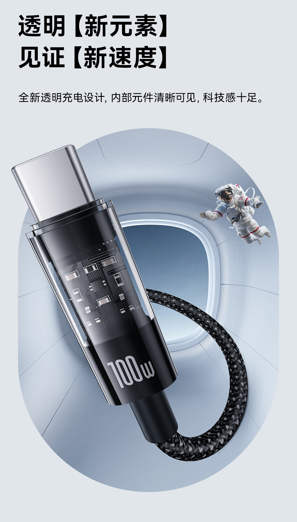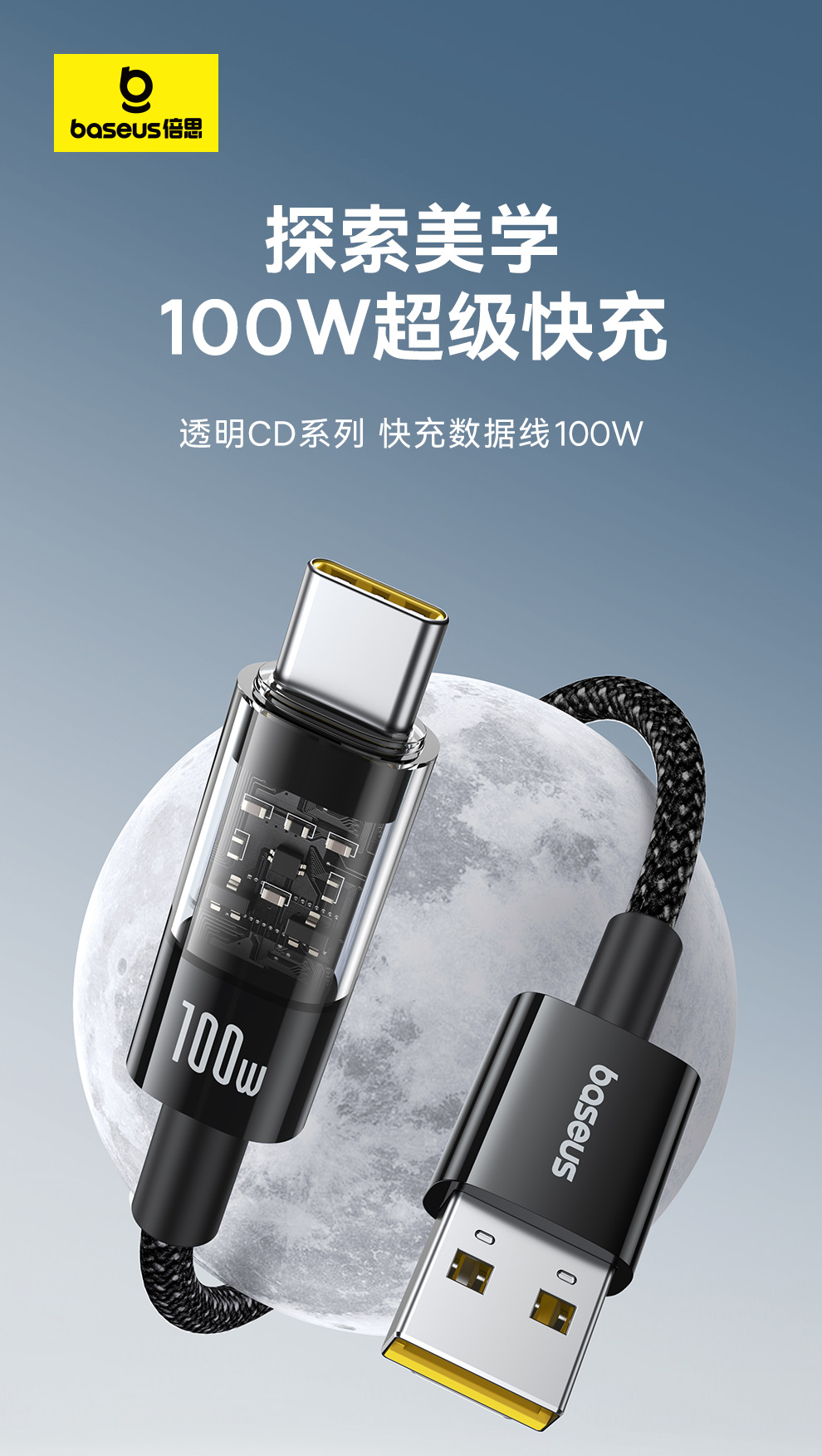 倍思 透明CD系列 快充数据线 USB to Type-C 100W