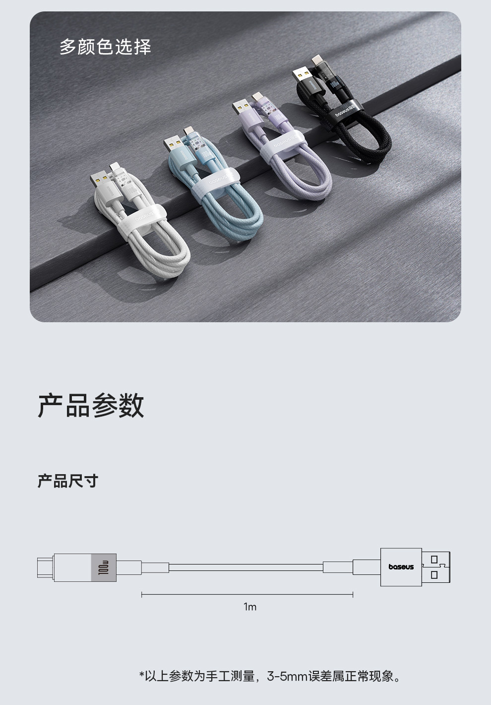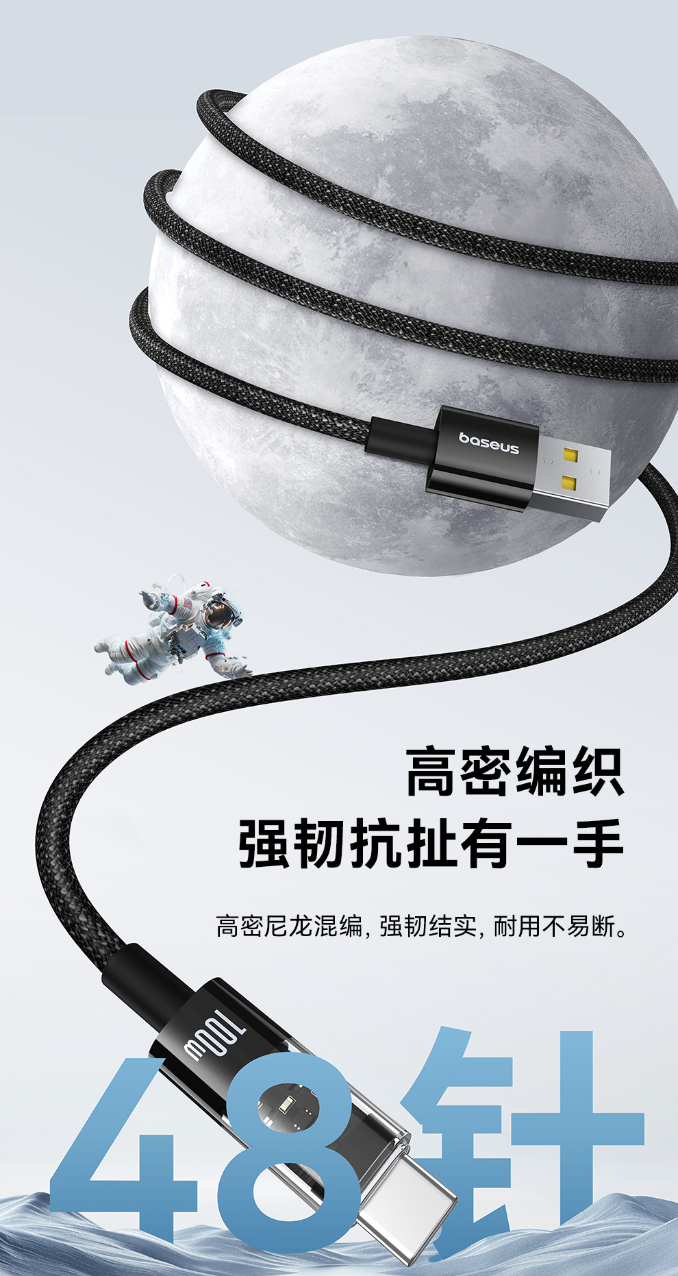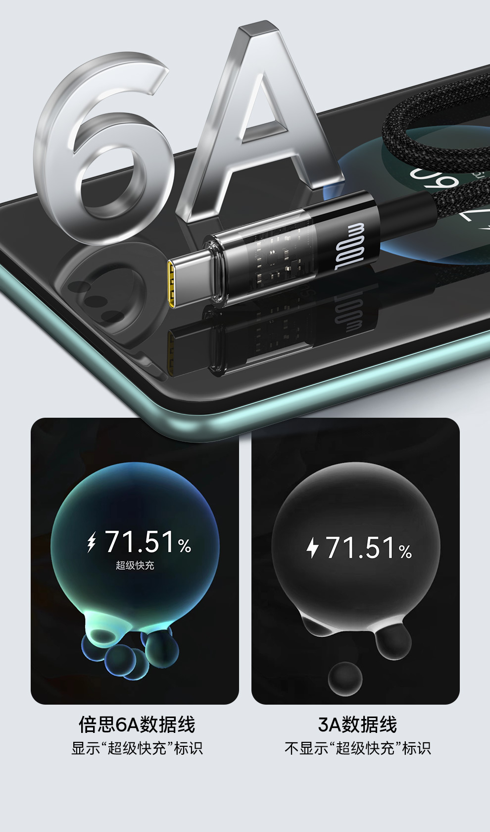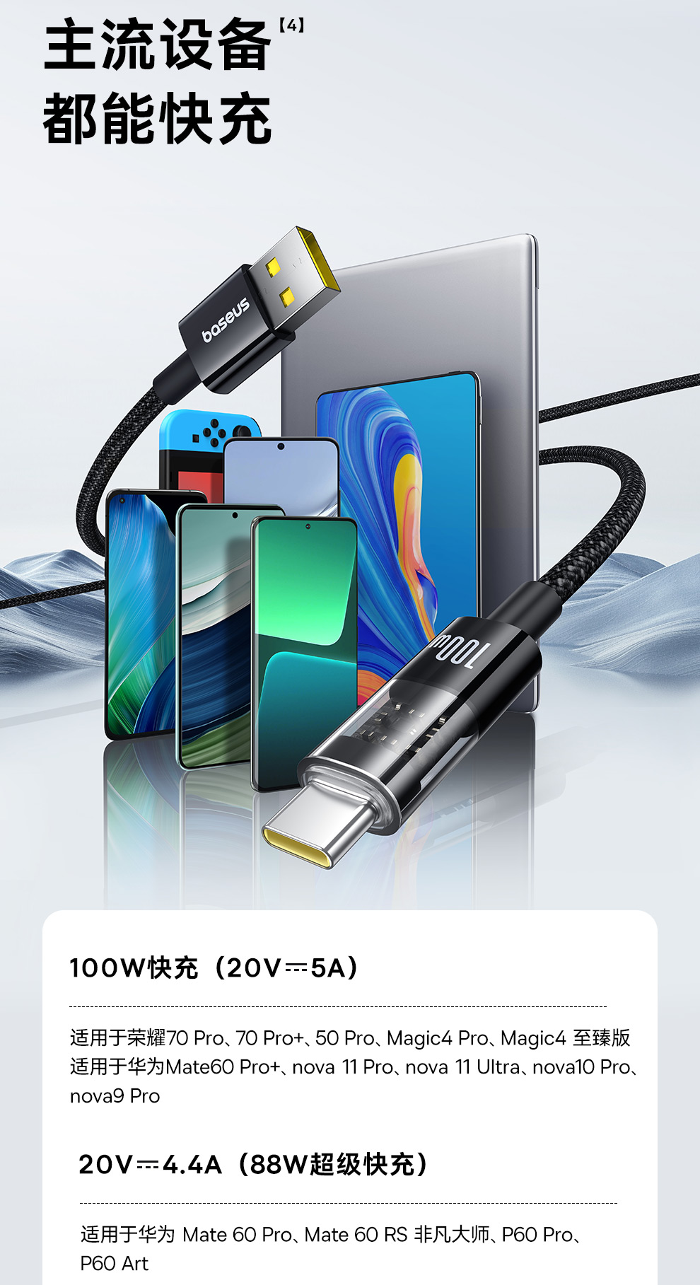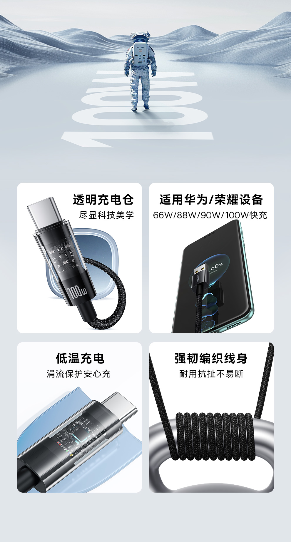 倍思 透明CD系列 快充数据线 USB to Type-C 100W