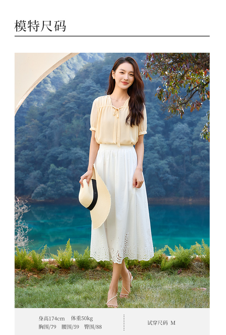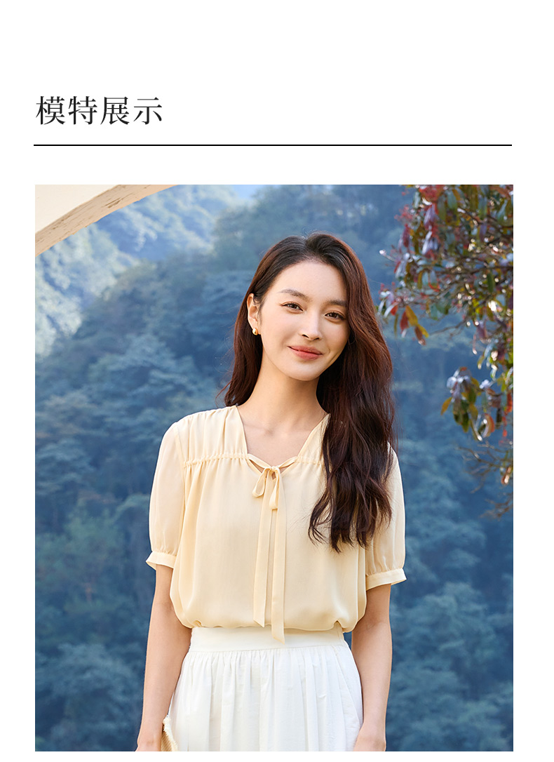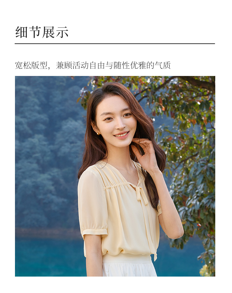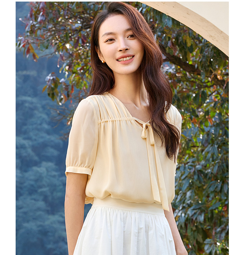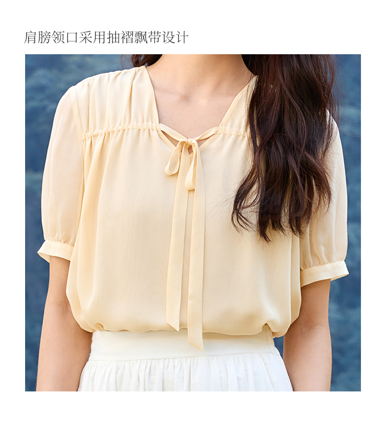 玳莎双层真丝乔其上衣女2025夏季新款宽松轻薄领口飘带设计感小衫 FB31102