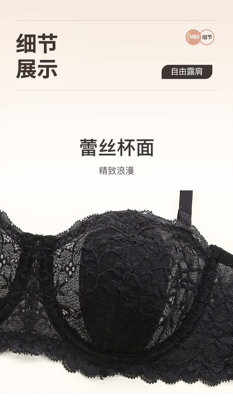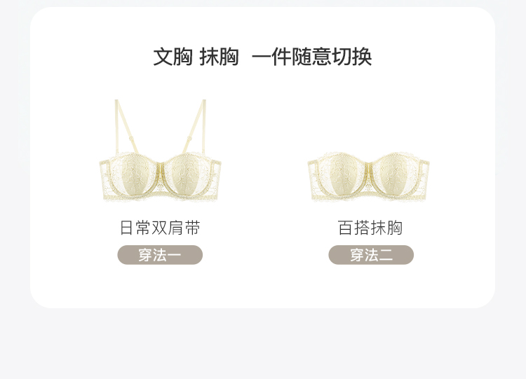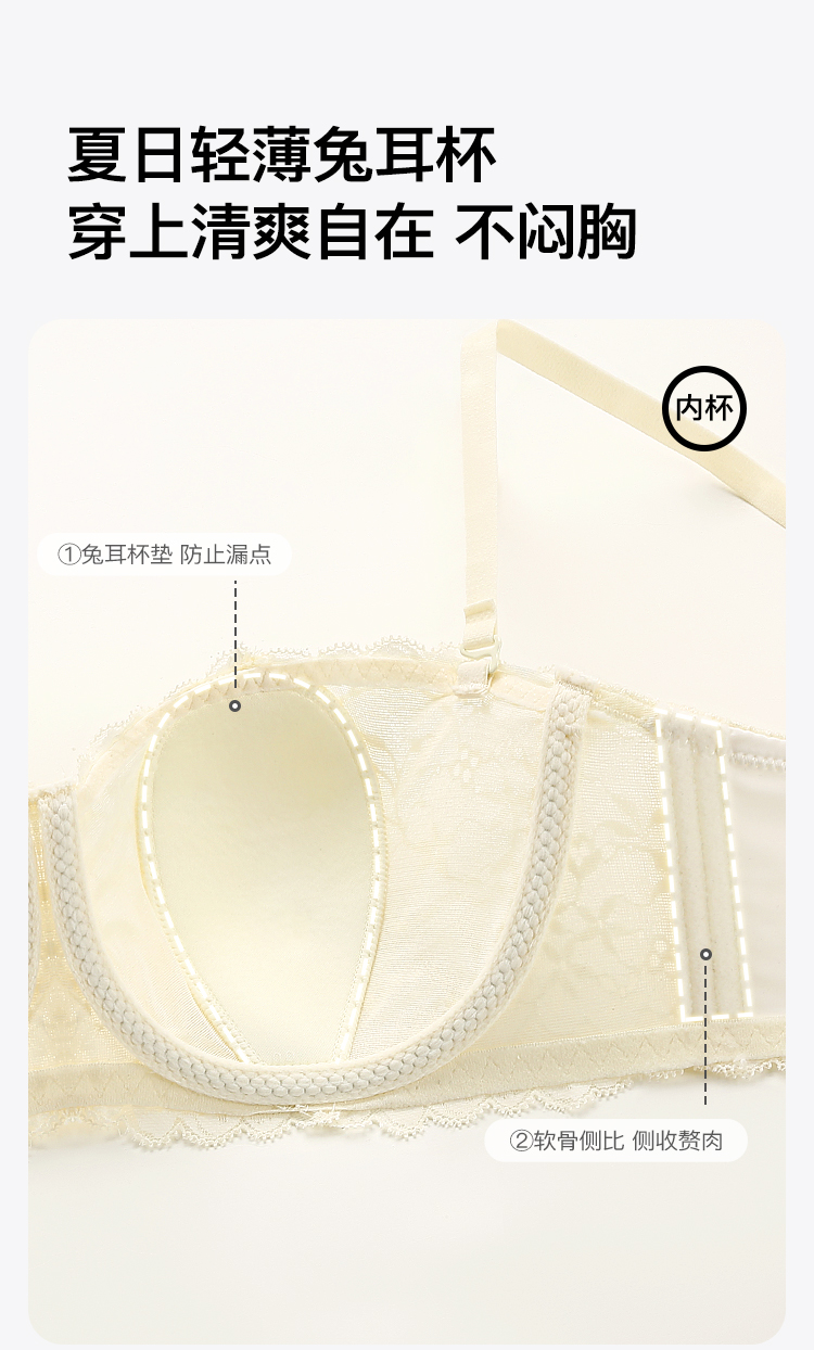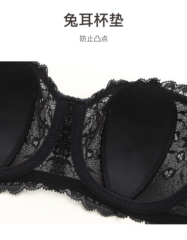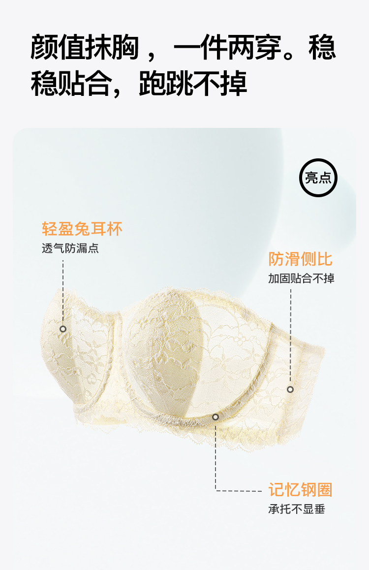 大码无肩带防滑不掉内衣女轻爽透气兔耳杯防凸点上托防垂文胸静花抹胸