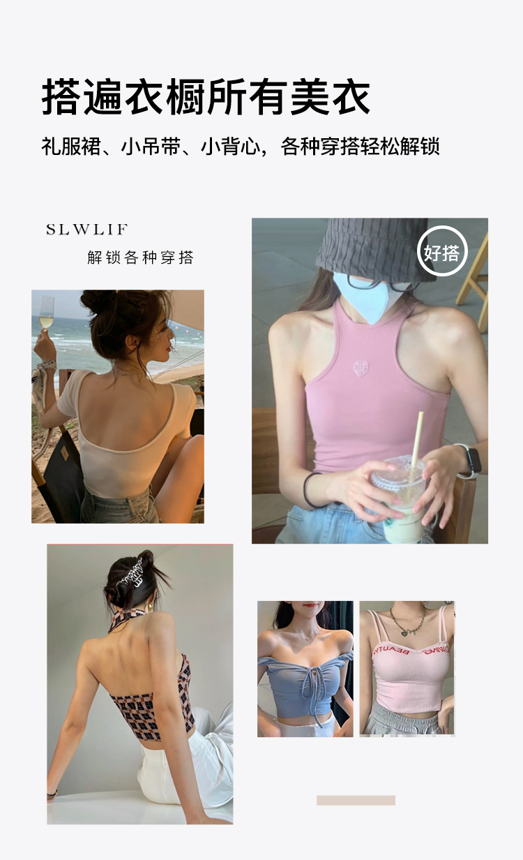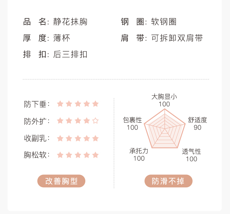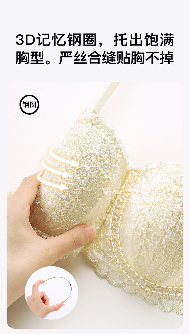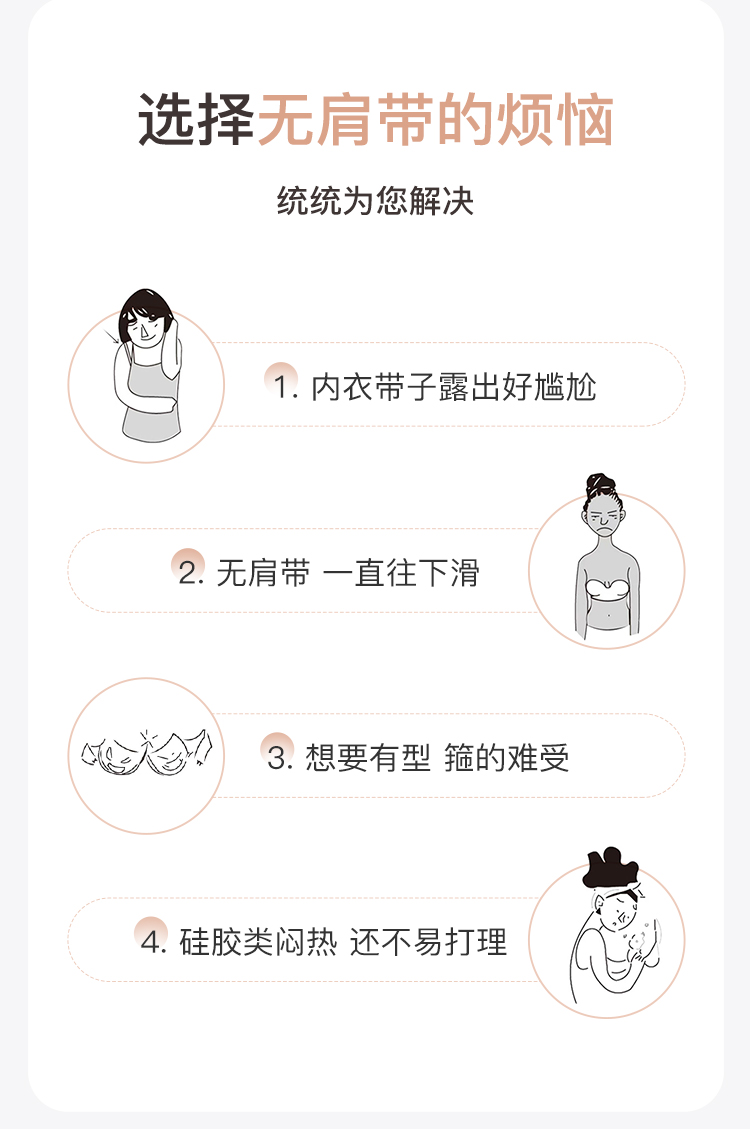 大码无肩带防滑不掉内衣女轻爽透气兔耳杯防凸点上托防垂文胸静花抹胸