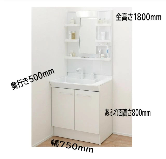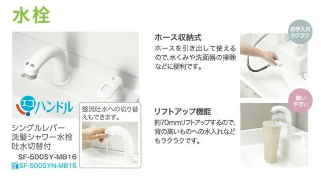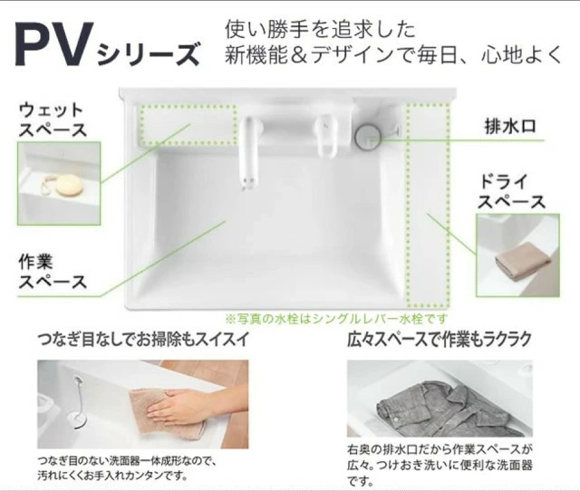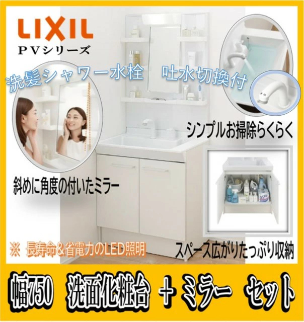 骊住PV系列白色两开门式洗面台750mm三面镜柜吐水切换洗发淋浴水龙头