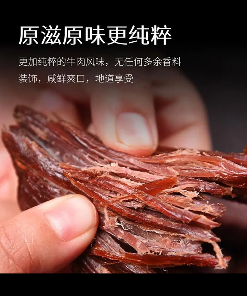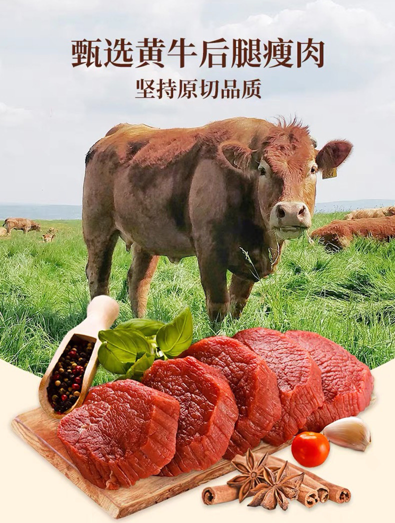 酱牛肉可以自己切片,大块、厚实、肥瘦相间,肉质爽嫩,一点不塞牙!可以直接吃,也可以卷饼、下面、配酒,很是方便!牛肉干和牛肉片也不错吃,淡淡的盐味,不会很难嚼,不费吃咬肌!想要来点优质蛋白质时,可以当零嘴,也适合健身减肥人,碳水低,没有罪恶感,因为调味料少,卡路里也是很好控制,还饱腹!