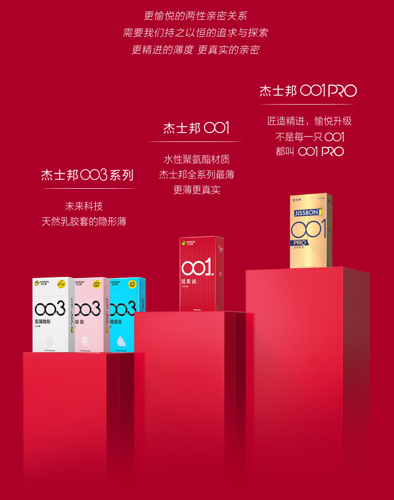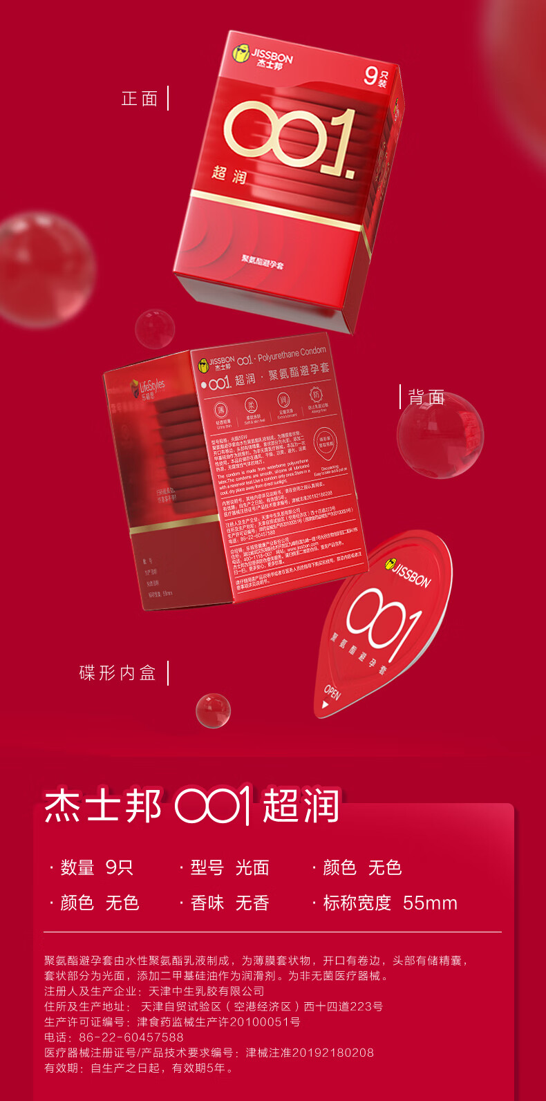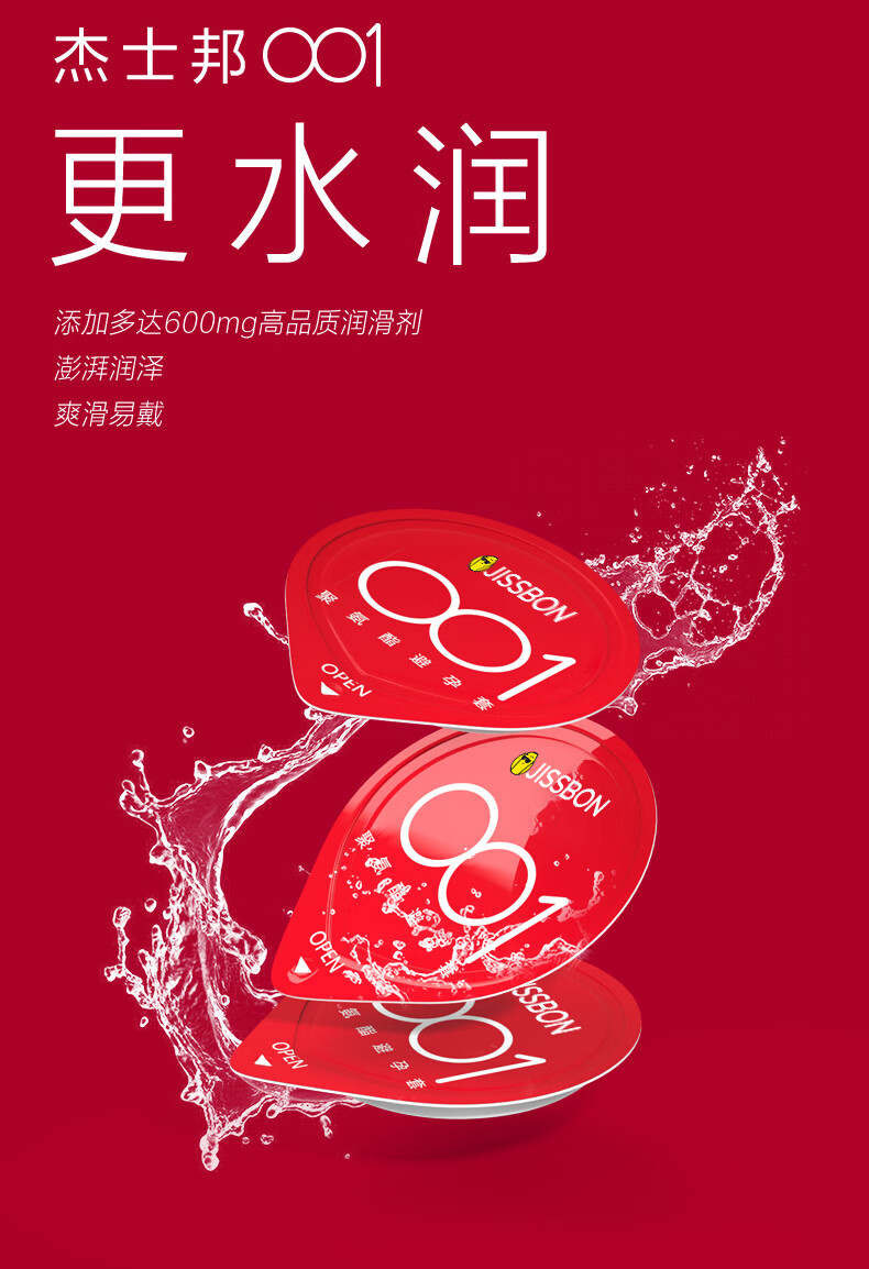 【杰士邦001超润5只装】薄度升级 更水润