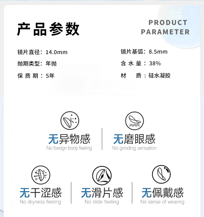 小灯泡灰色日抛美瞳2片装14.2小直径YR02不同度数拍二
