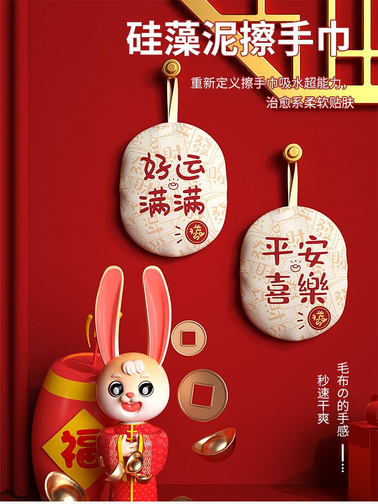 硅藻泥擦手巾家用擦手毛巾挂式可爱加厚加大吸水速干卫生间挂巾