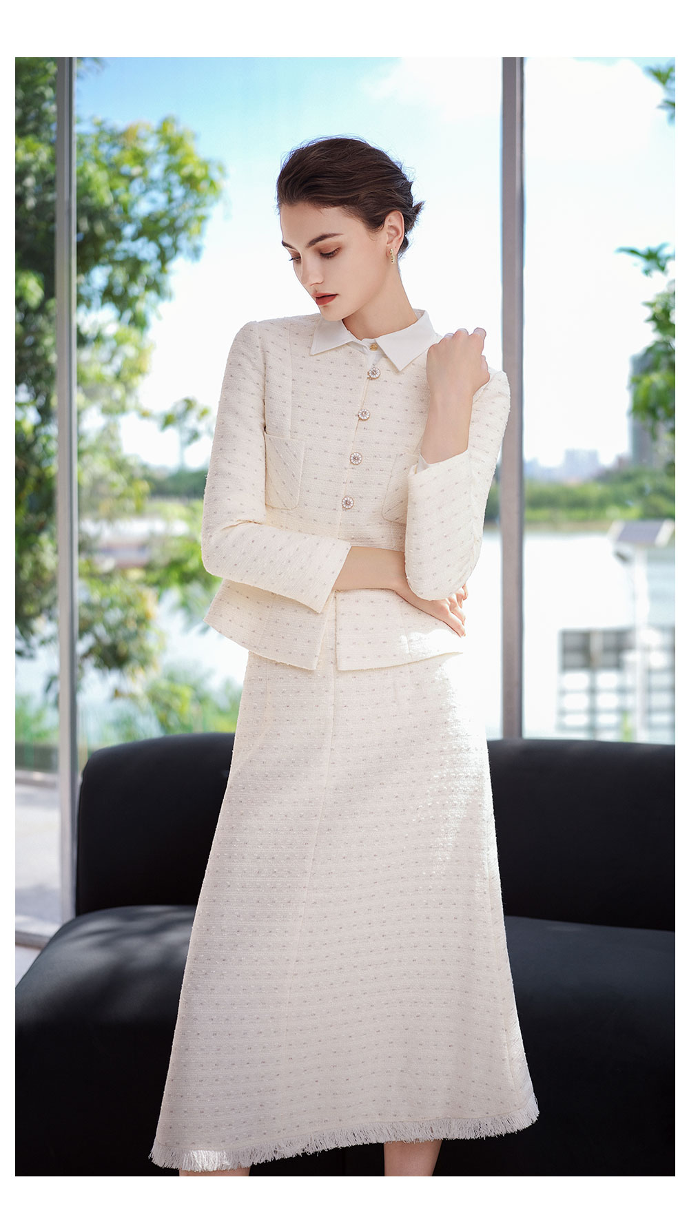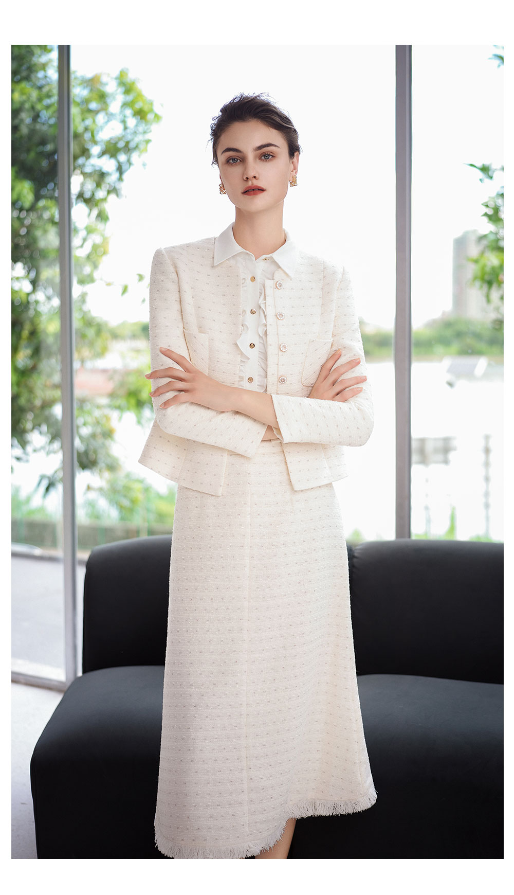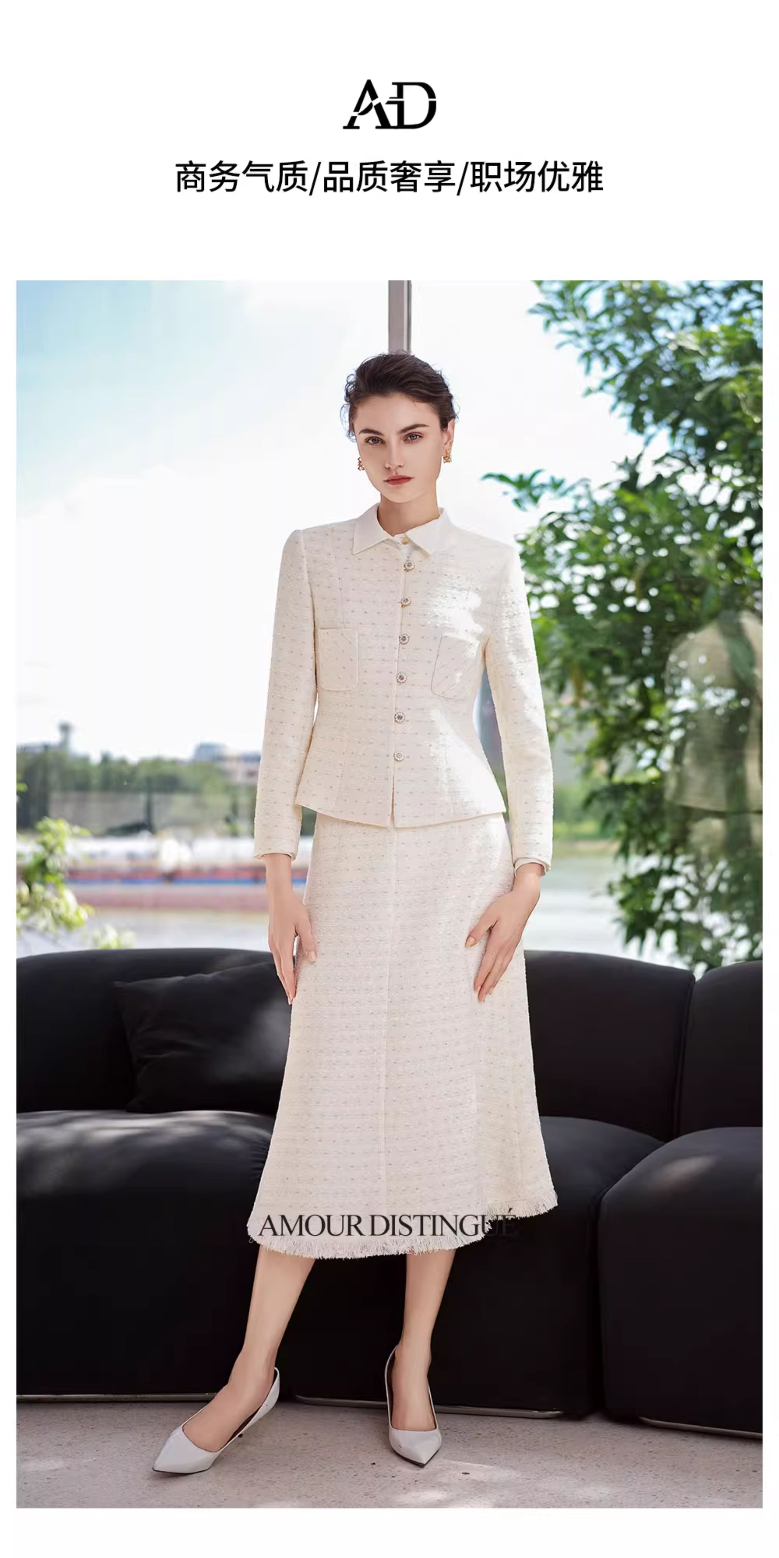 AD2025年新款名媛时尚套装女小香风外套高级感毛呢编织伞裙两件套