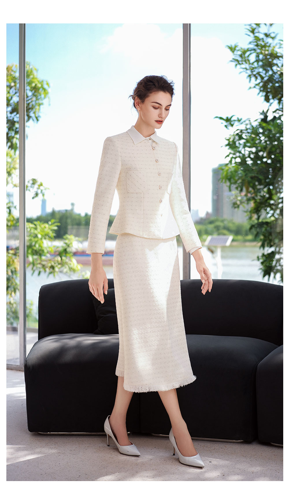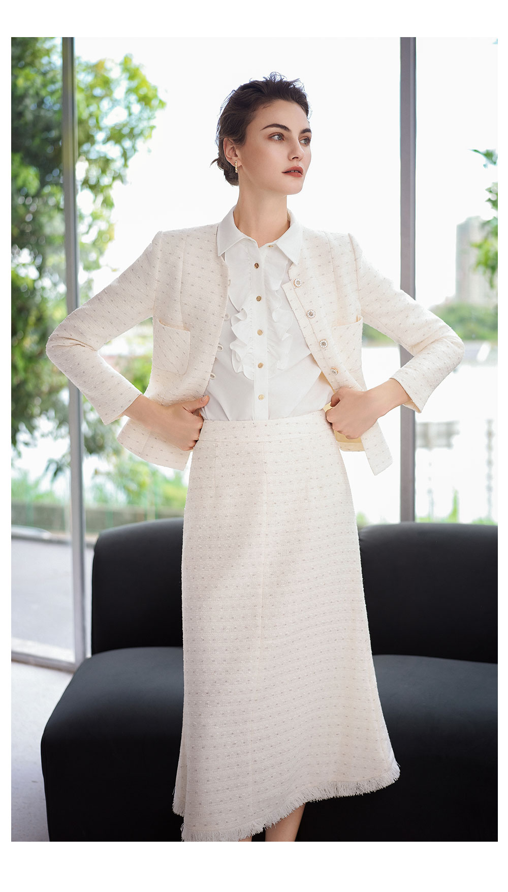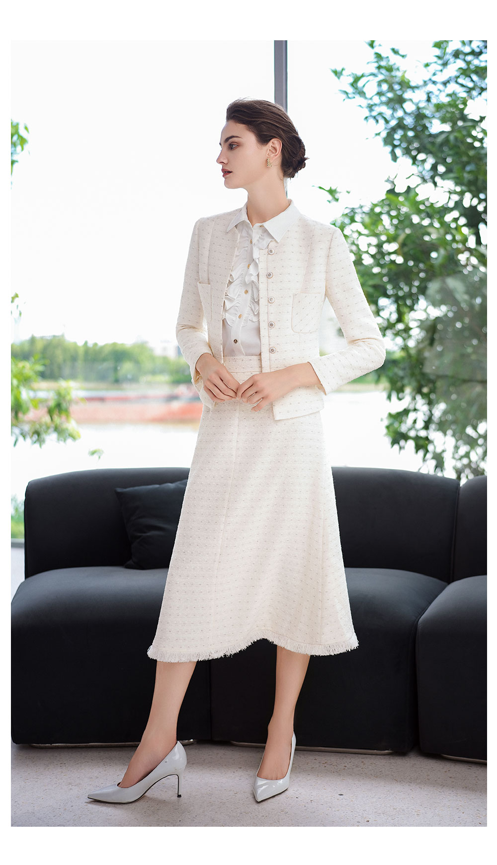 AD2025年新款名媛时尚套装女小香风外套高级感毛呢编织伞裙两件套