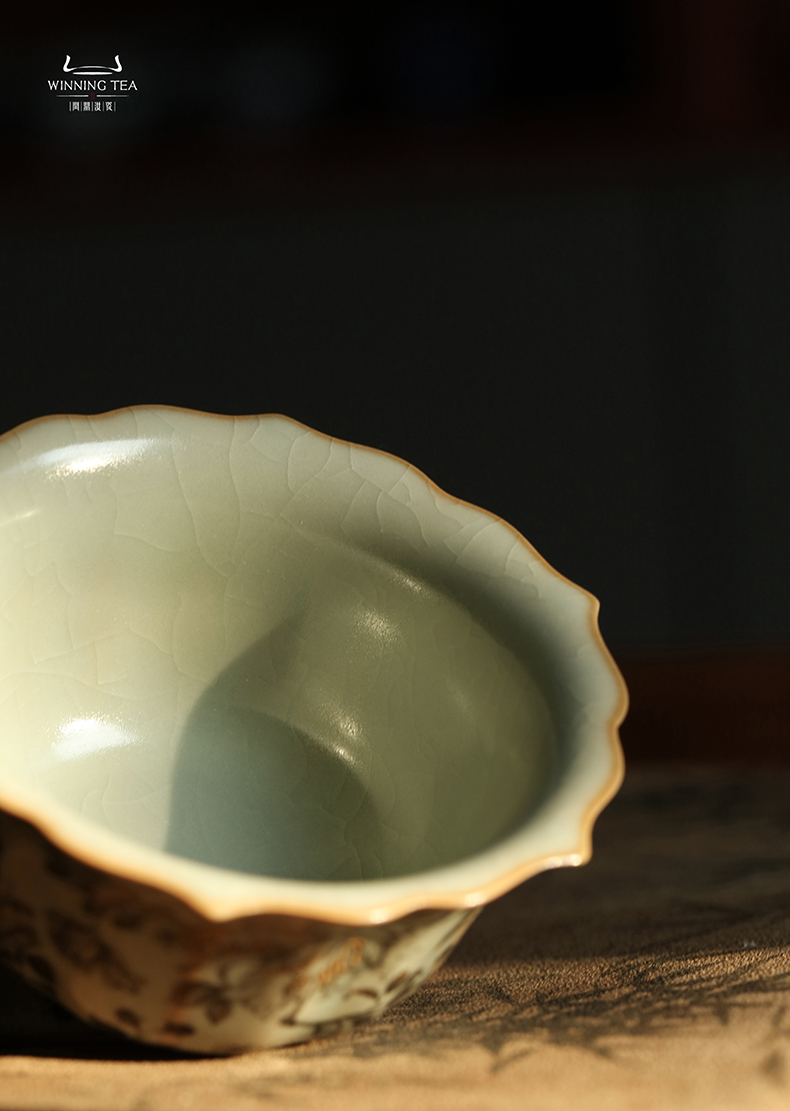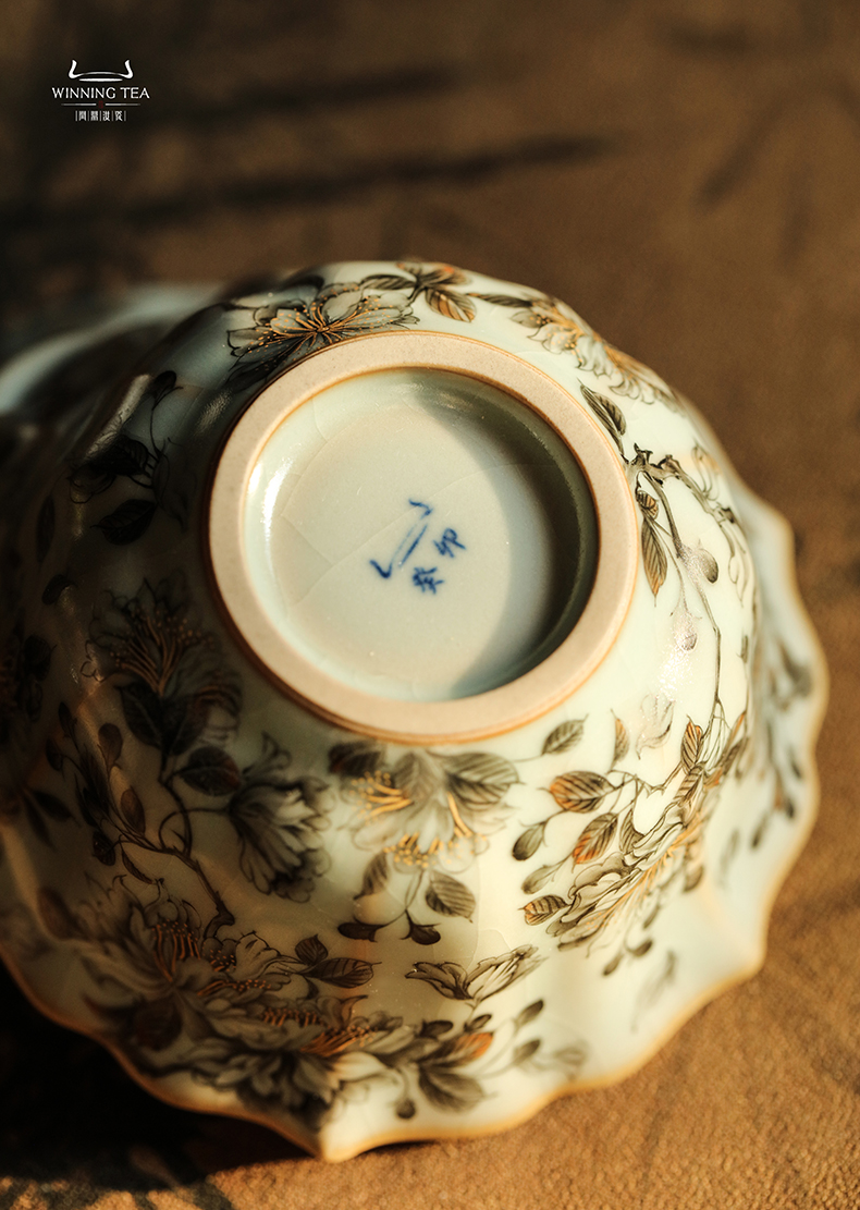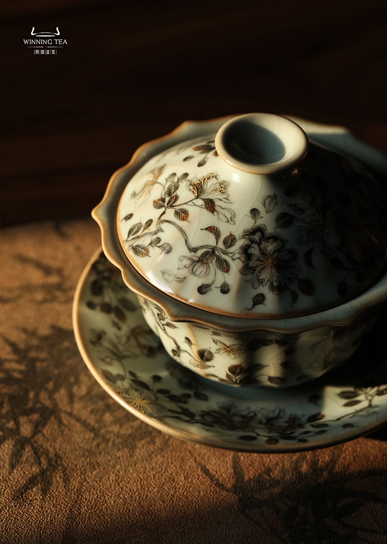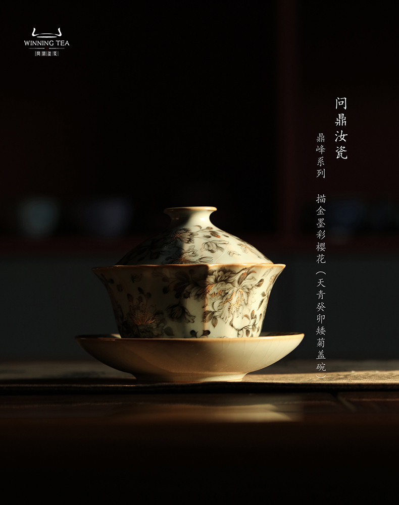 问鼎汝瓷鼎峰系列天青癸卯矮菊盖碗(描金墨彩樱花)