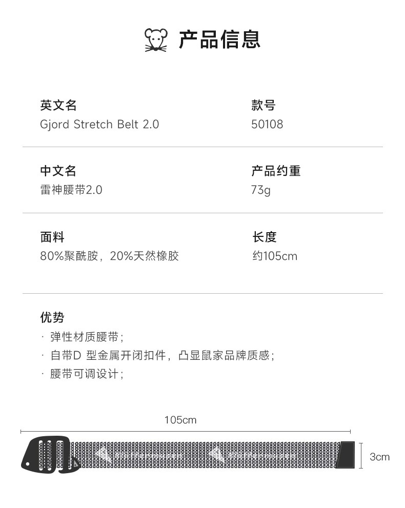 Klattermusen攀山鼠多功能腰带男女款压缩带弹性长短可调节50108U