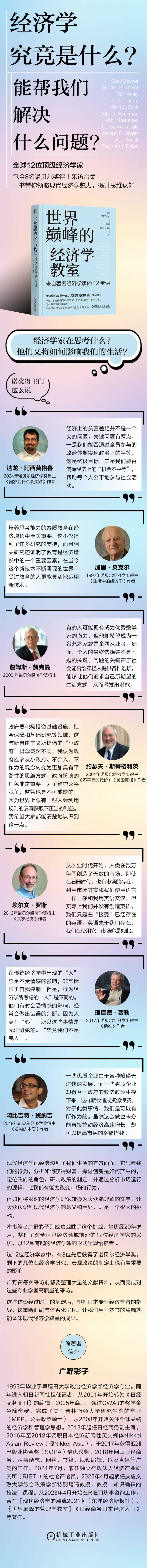 【前言】前 言经济学究竟有何用处?它的迷人之处又在哪里?当下,我们对它的了解到了何种程度?又有哪些经济研究备受瞩目?作为一名记者,我的脑子里满是这些质朴的问题。事情发生在2000年初,当时我刚从一家全国性报社跳槽到出版社成为一名经济杂志记者。在那个年代,虽然互联网尚未普及,社交媒体和智能手机也都未问世,但毕竟已经进入21世纪,可在主流媒体上常被提及的经济学家却仍是凯恩斯、弗里德曼、熊彼特等人,偶尔也会有人提及马克思和亚当斯密。对此,我不禁心生疑惑。这些人虽然都是重量级的经济学家,但他们毕竟是上一个时代的人物了。虽然在日本为人们所熟知的当代外国经济学家有保罗克鲁格曼、约瑟夫斯蒂格利茨等人,并且每年都会评选出诺贝尔经济学奖得主,但对于当时既缺乏知识又没有头绪的我来说,似乎只有那些擅长表达、有强烈想法和信念的经济学家才是一流的。在科学界,每当有新的研究成果问世,它总是能吸引人们的目光,为人们津津乐道,甚至成为各大新闻媒体的头条。而本应为我们生动展现、分析社会生活,近在咫尺的经济学,却似乎永远停留在凝固的时间里了。随着时间的推移,经济环境、政治思想和社会形态都发生了翻天覆地的变化,但为何我们一直在沿用着相同的古典经济学理论呢?这一朴素的疑问令我颇为费解。我感觉一定存在一道厚厚的防火墙,将最新的专业知识与一般大众隔离开来,所以我很渴望探得墙那边的最新动态。现在回想起来,这真是一个不知天高地厚的想法。不过,作为一名曾经在综合性报社工作过的记者,我对最前沿的讨论总是充满了纯粹的好奇心,而这种好奇心最终战胜了一切。我深信,有一些研究不止于教授知识,更有助于我们理解当今社会。这本书是在摸索中持续进行的,汇总了我近20年的采访、探索、编辑和撰写活动,是一部总结性的集大成之作。本书是在对美国最杰出的12位经济学家访谈的基础上撰写而成的。我曾不厌其烦地请教过每一位学者,他们的理论在实践中究竟有何用处?如何运用这些理论去理解当下,特别是如何看待当下社会、政治、经济及商业等领域的一系列问题。虽然每位学者的研究动机不尽相同,但与他们每一次的邂逅、交往都那么令人刻骨铭心,因为每个人都是独一无二的。通过阅读本书,你将看到那些直到21世纪的今天仍备受瞩目的颠覆性的见解是如何被这些经济学家提出的,他们在关心什么,怎样从事研究,以及他们是如何在解决重大社会问题时进行头脑风暴的。在每一章的访谈部分之前,我专门撰写了关于各位经济学家的概要,特别关注了访谈当时所发生的时事,受访者的兴趣、学术史以及他的人际关系,即记者们通常说的;人物故事。为了更好地介绍这些经济学家的研究成果和成功背后的故事,对本人的访谈自不必说,我还专门做了大量文献调查,并对相关人士进行了广泛的面对面的访谈以及现场采访。虽然撰写这部分的初衷只是想尽可能地帮助读者理解访谈背后的来龙去脉,但有时其长度甚至和访谈正文的长度不相上下。此外,在访谈中我还穿插了一些提问,并加入了解说。对于各章中登场的每位经济学家的研究背景、理论概要以及围绕这些理论的各种争论等内容,我专门采访了活跃在日本一线的学者。除了当时的采访录音,在撰写本书时,我还尽可能多地查阅了相关著作、论文等材料,有时也加入了直接从采访者本人那里得到的最新的追加评论。其中有些内容还涉及他们目前正在进行的研究,我在自己理解的范围内尽力总结,分享给大家。对于某些领域可能还存在着视角缺失的问题,那是因为我的能力有限,还望读者多加谅解。不过,幸运的是,在撰写过程中,我得到了很多专业人士的建议以及学者本人的慷慨帮助,在此深表谢忱。本书的前半部分以;关于人与市场的经济学为主题,简要介绍了微观经济学最前沿的内容。这一部分涉及人力资本理论、行为经济学、拍卖理论、匹配理论、实证研究以及;生存力经济学等多个领域。这一部分的访谈对象包括已故的加里贝克尔先生、理查德塞勒先生、丹艾瑞里先生、保罗米尔格罗姆先生、埃尔文罗斯先生、约翰李斯特先生以及詹姆斯赫克曼先生。后半部分聚焦于与政策和政治相关的经济学,包括发展经济学、产业政策理论、制度与政治经济学、新资本主义经济学以及金融政策理论。受访者包括阿比吉特班纳吉先生、达龙阿西莫格鲁先生、约瑟夫斯蒂格利茨先生、丹尼罗德里克先生以及拉古拉迈拉詹先生。在受访的这12位经济学家中,有7位曾获得诺贝尔经济学奖。不过,保罗米尔格罗姆先生和理查德塞勒先生在最初接受采访时尚未获奖。我曾任职于日本朝日新闻社,后来转至日经BP的《日经商业周刊》编辑部当编辑。在着手撰写本书时,我的记者生涯已经度过了整整30年。大学时期,我在早稻田大学政治经济学部学习,接触了经济学的一些皮毛。进入出版行业后,因为要负责破产企业重组的相关报道,我开始对经济政策与理论的关系产生兴趣。于是,2003年我前往美国普林斯顿大学攻读公共政策硕士学位,集中学习了宏观经济分析、计量分析、金融和应用微观经济学等
