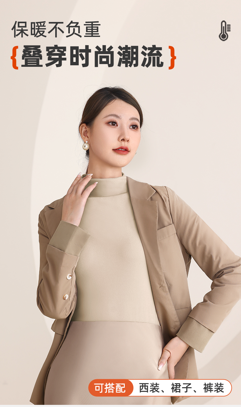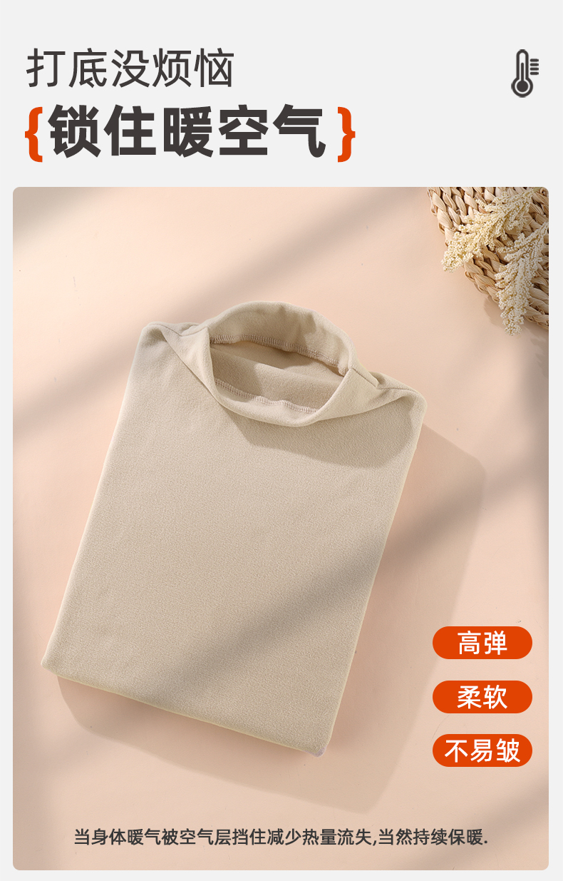 雅黛丽保暖上衣女7A抑菌双面磨毛简约打底衫可外穿秋冬季内搭秋衣