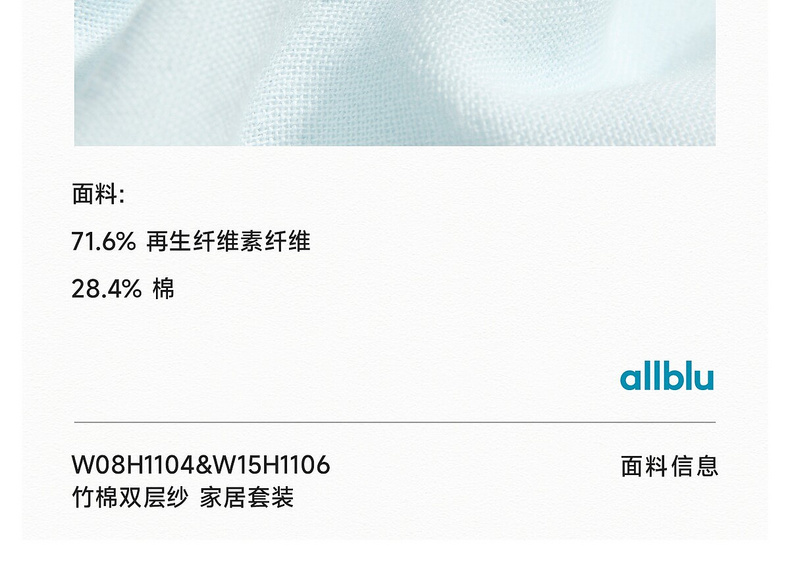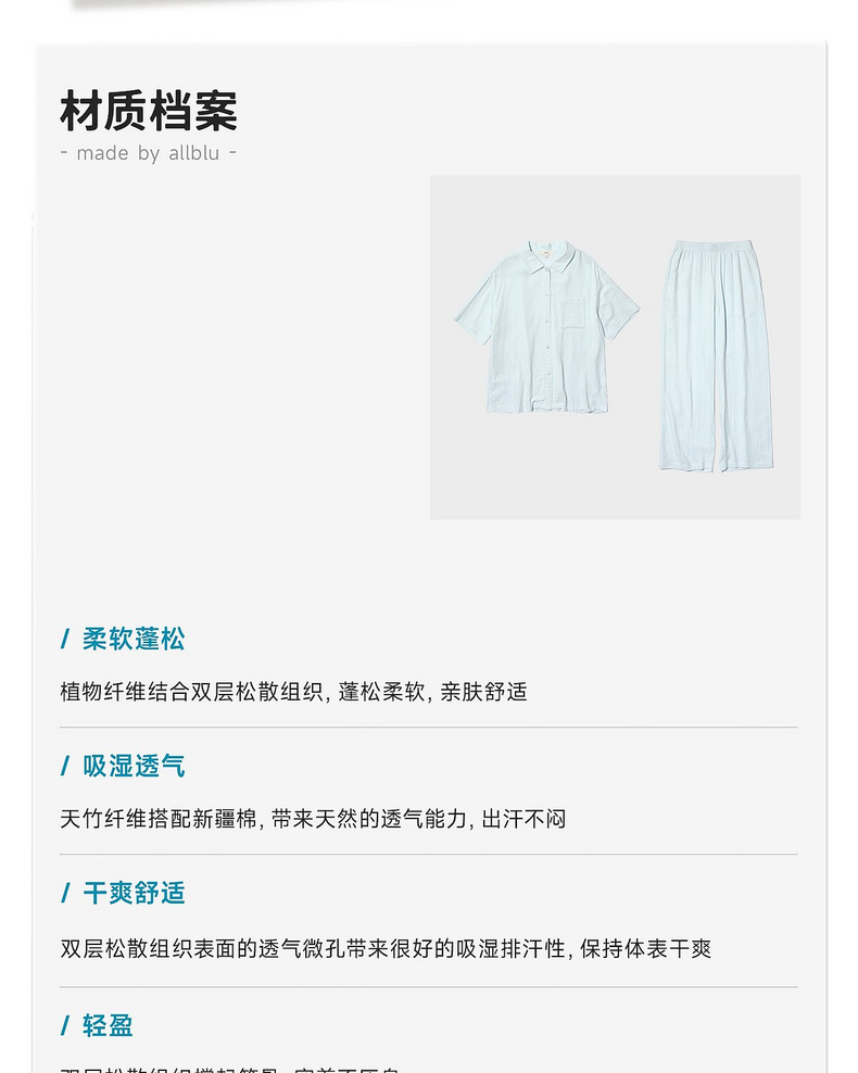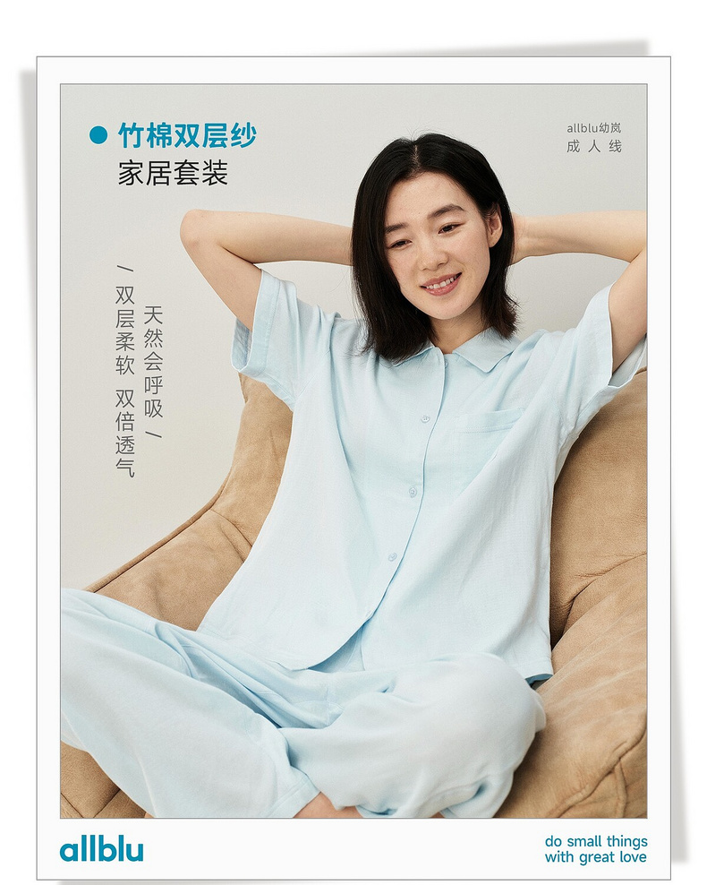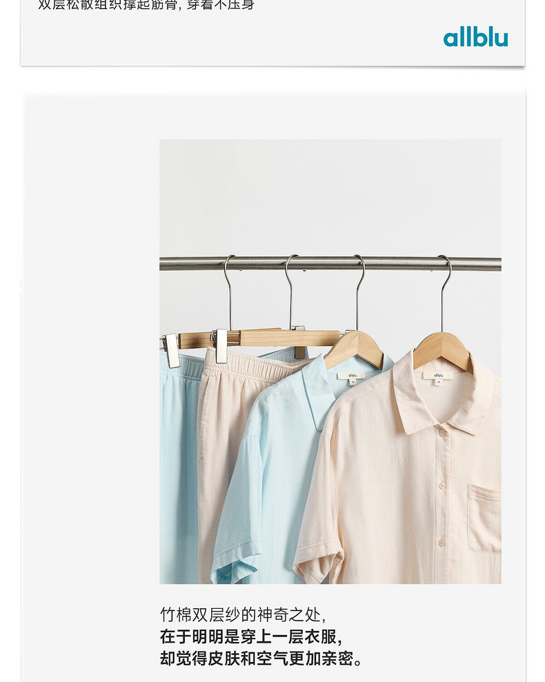 【夏Vol.1】allblu女装“天然会呼吸”26春夏【竹棉双层纱】女士睡衣家居套装ZY