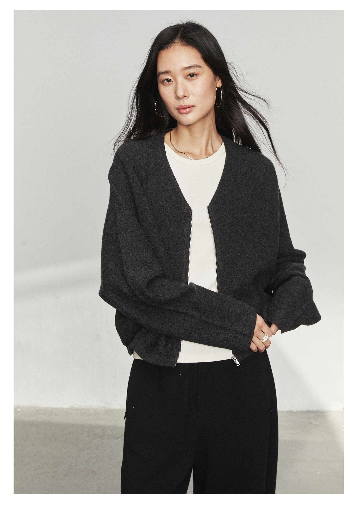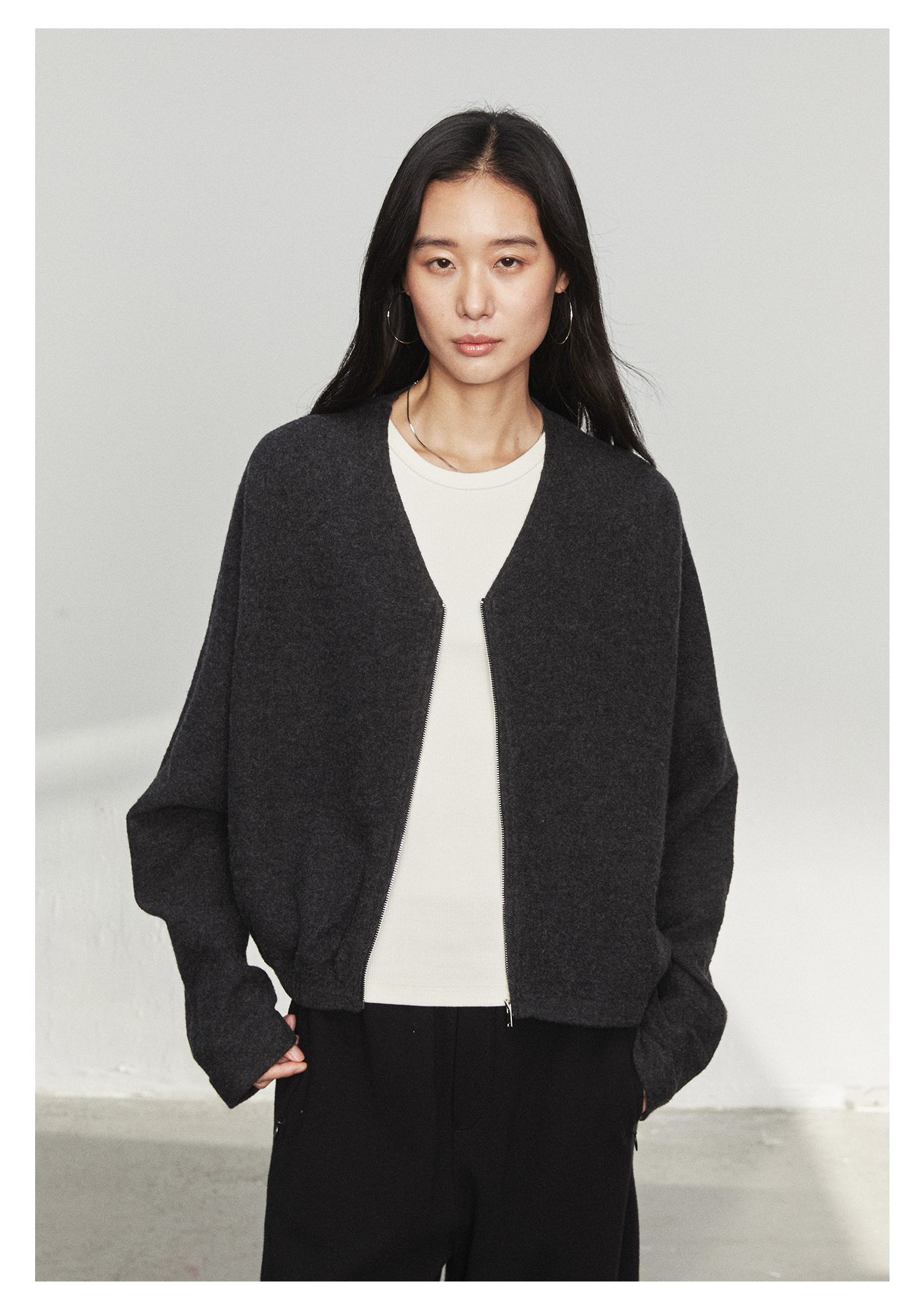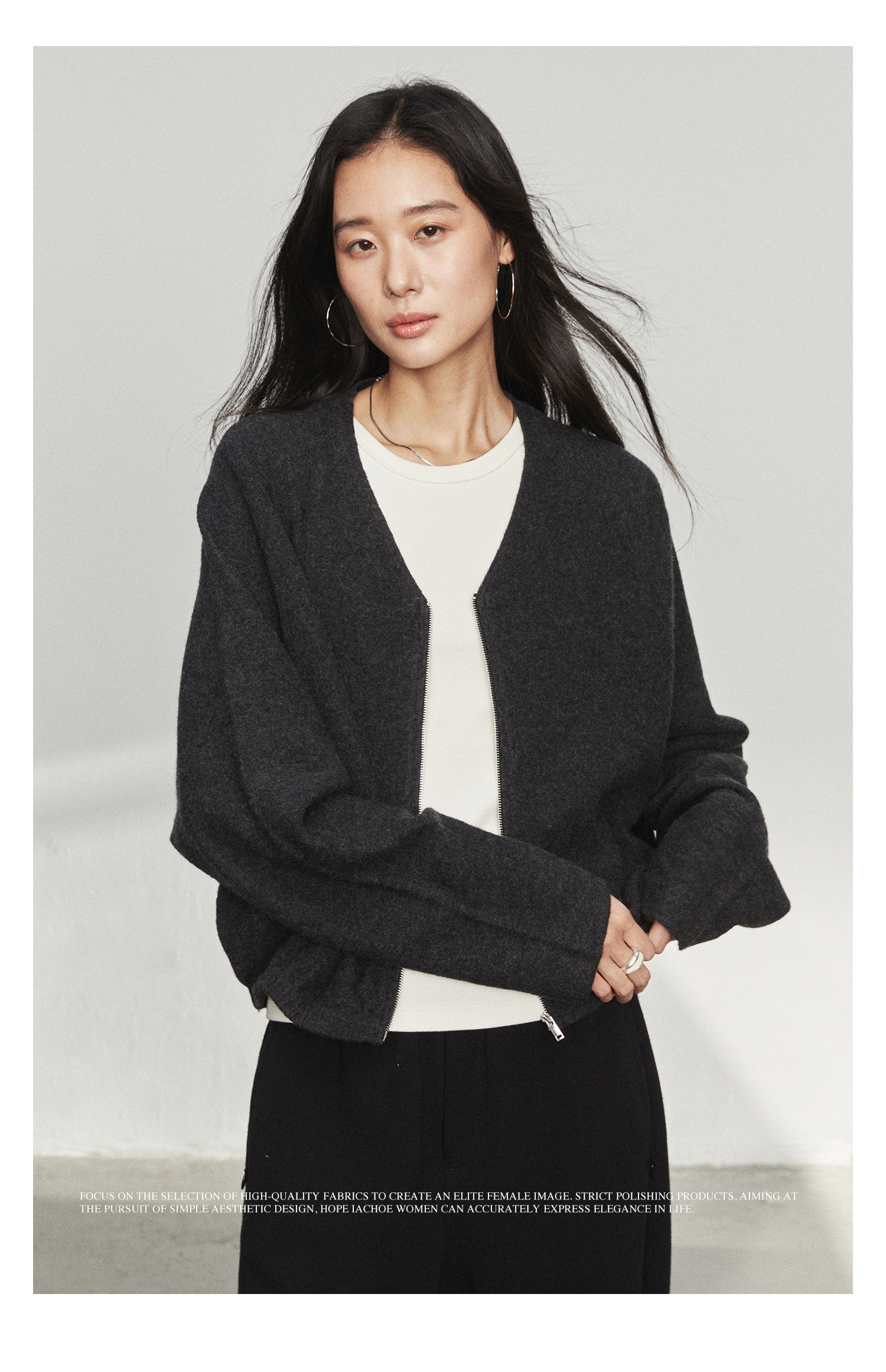 棉仓3561506001-【轻缩羊毛】秋装绵羊毛v领针织开衫外套 *毛衣开衫
