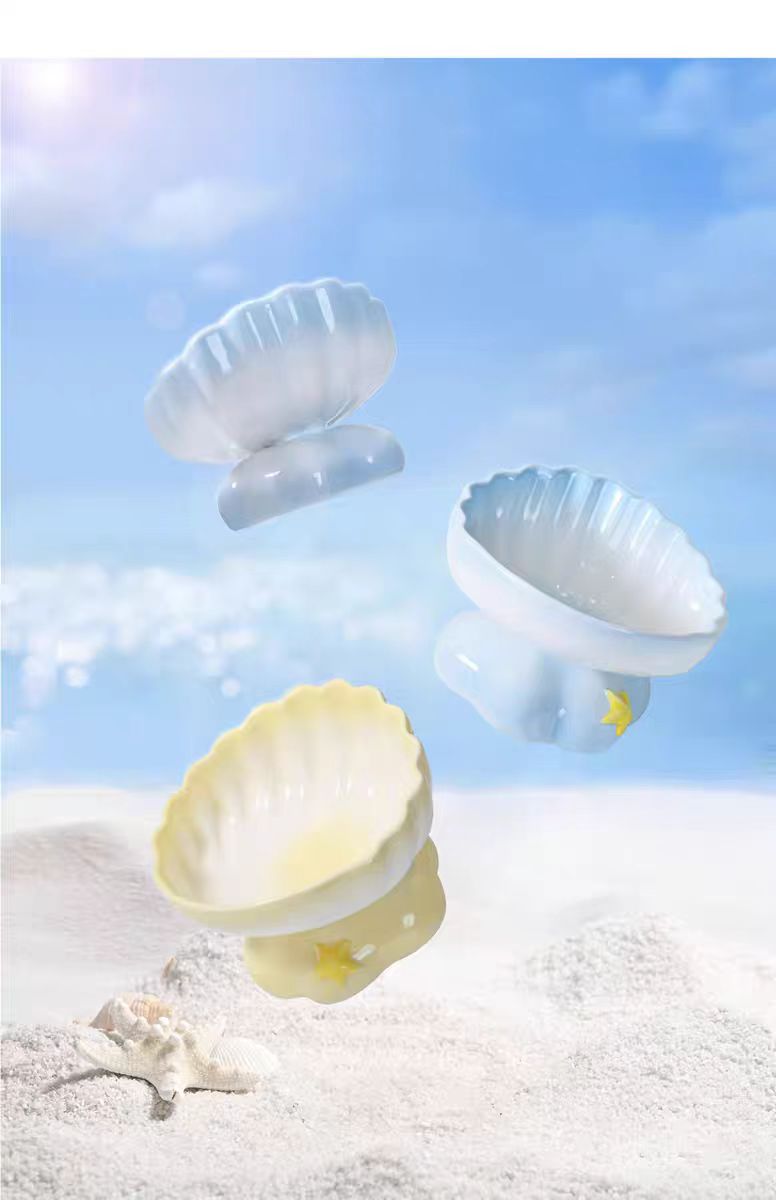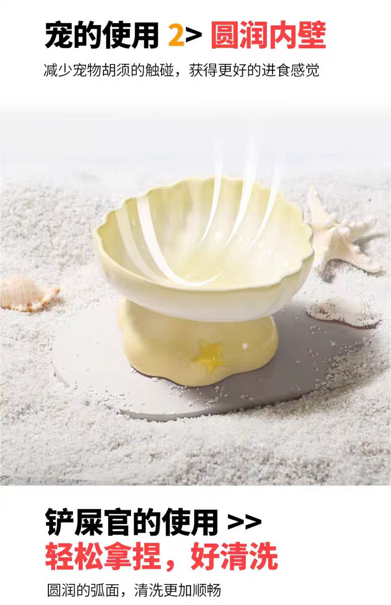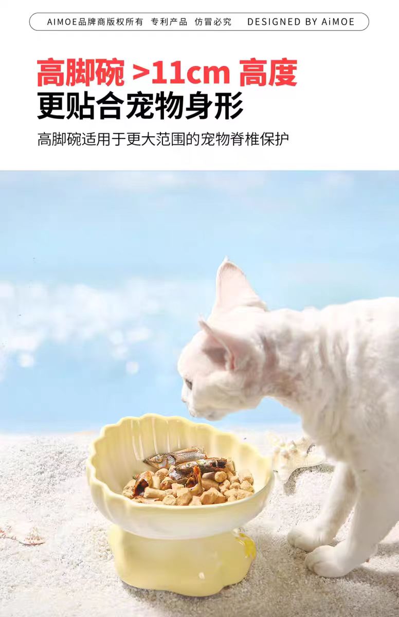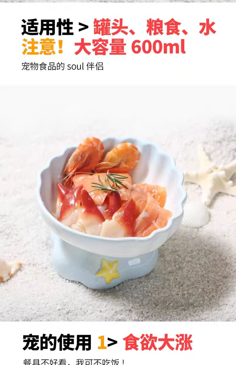 4楼Eubelle欧蓓 爱萌仕aino猫狗碗陶瓷碗 宠物喂食碗 饮水贝壳碗 大容量护颈锥高脚碗 活动价:79.6元