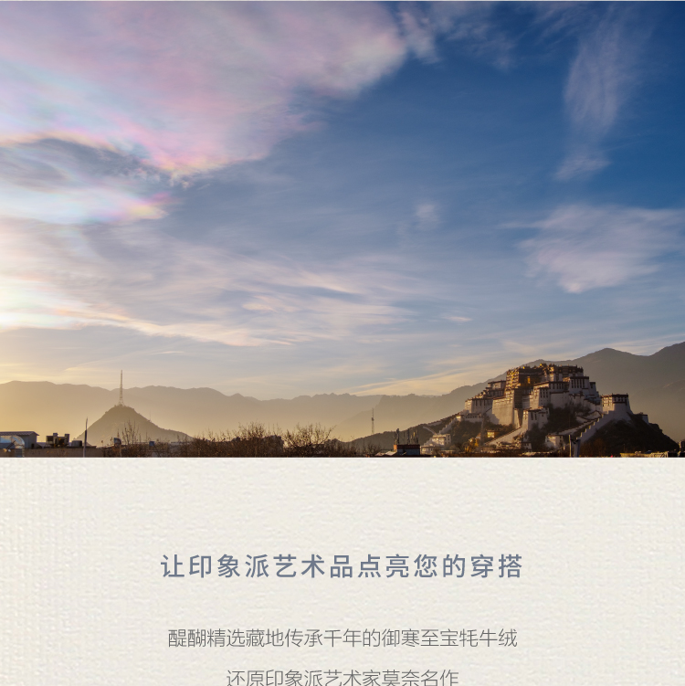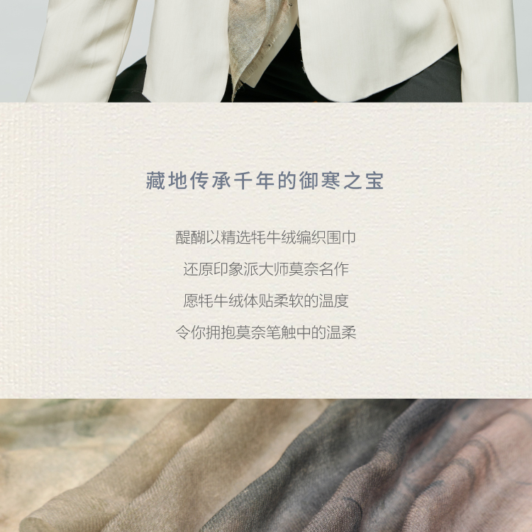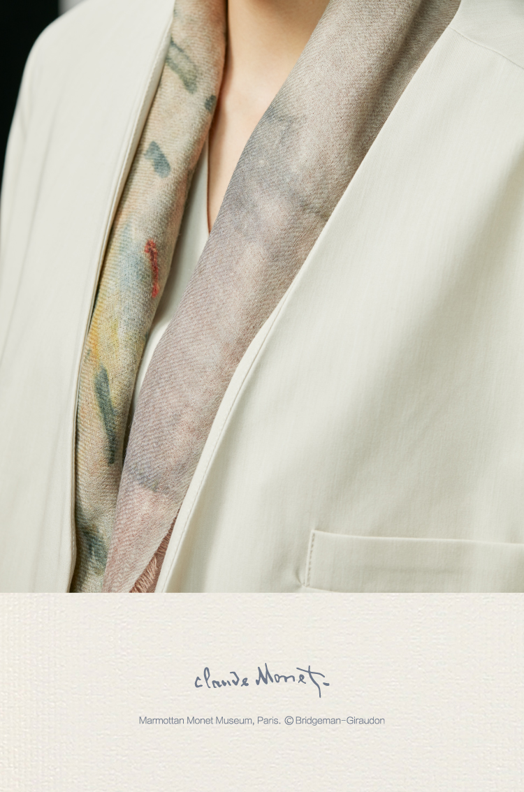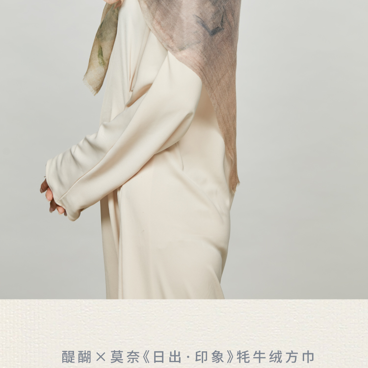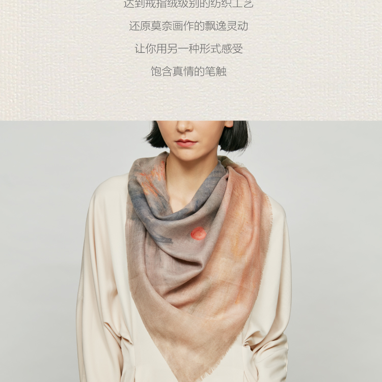 醍醐莫奈日出印象牦牛绒围巾印象派油画轻奢薄款防晒牦牛绒方巾