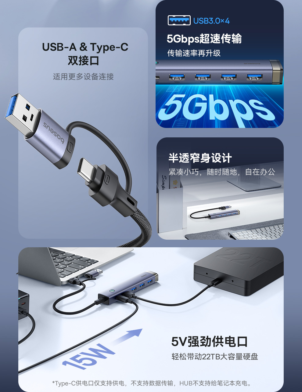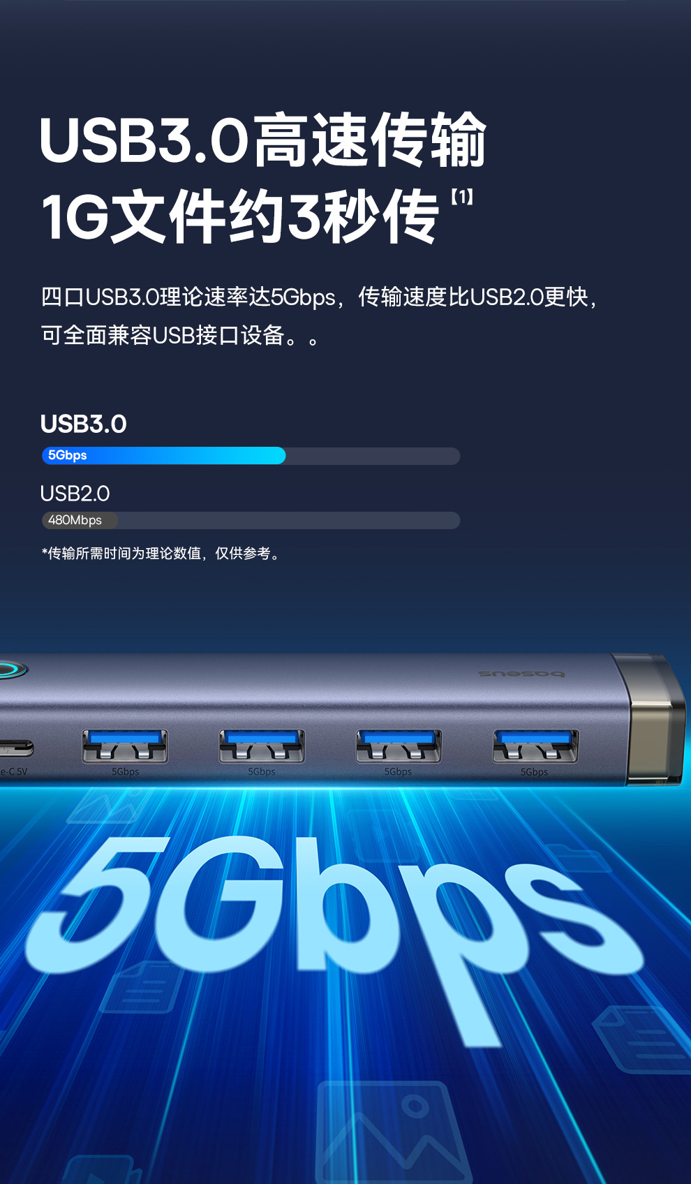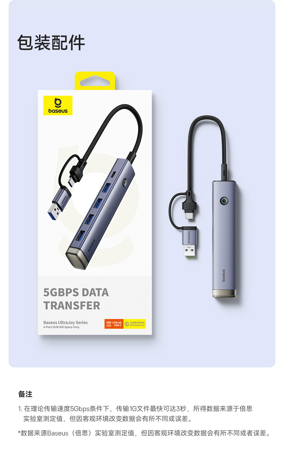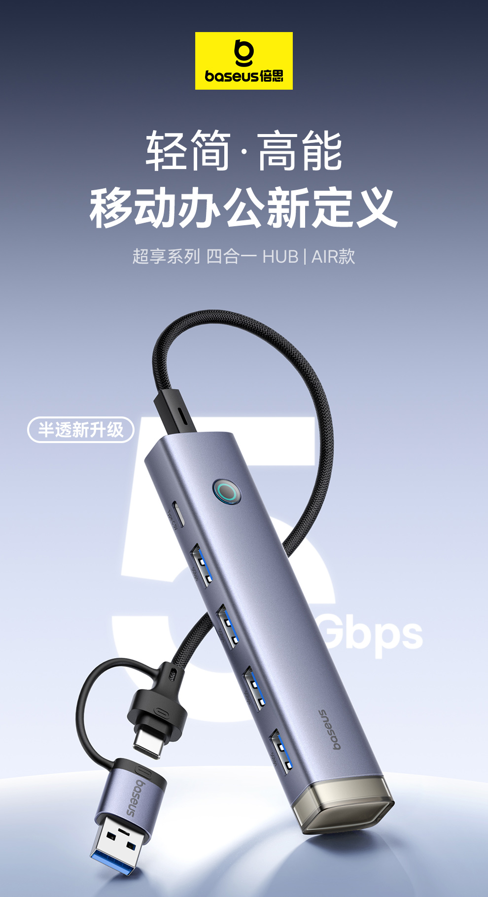 【69元3件】倍思 超享系列 四合一 HUB Lite USBA to USB3.0*4